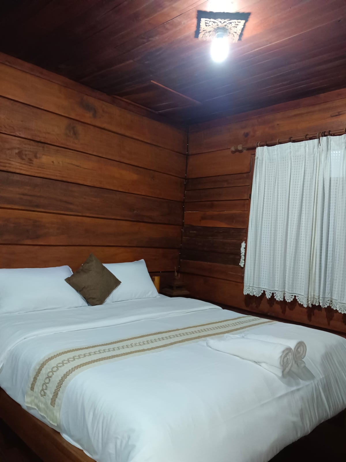 Escape to a peaceful Thai wooden cabin surrounded by nature, with panoramic ricefield and mountain views. Enjoy fishing in the private pond, cooking in a fully equipped kitchen, and relaxing in total privacy. The cabin includes: Air conditioning & Water heater, Fast Wifi, Desk+Chair for working TV, Amenities(towel, toilet paper, shower gel, hair dryer, kitchenware) Ideal for remote work, slow life getaway or long stay