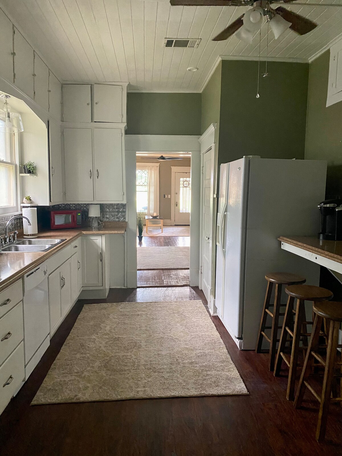 Enjoy our beautiful home in the heart of Lampasas, walking distance to downtown AND Badger Stadium! Enjoy a cup of coffee on the front porch, or walk to the local ice cream shop or the many restaurants and shops downtown. This 1700 sq ft home has 3 large bedrooms & 2 full baths. It boasts hardwood floors and high ceilings throughout. Covered parking in back. Great for a girls weekend, a work trip, or a romantic getaway to visit the local wineries. We know you’ll love this home!
