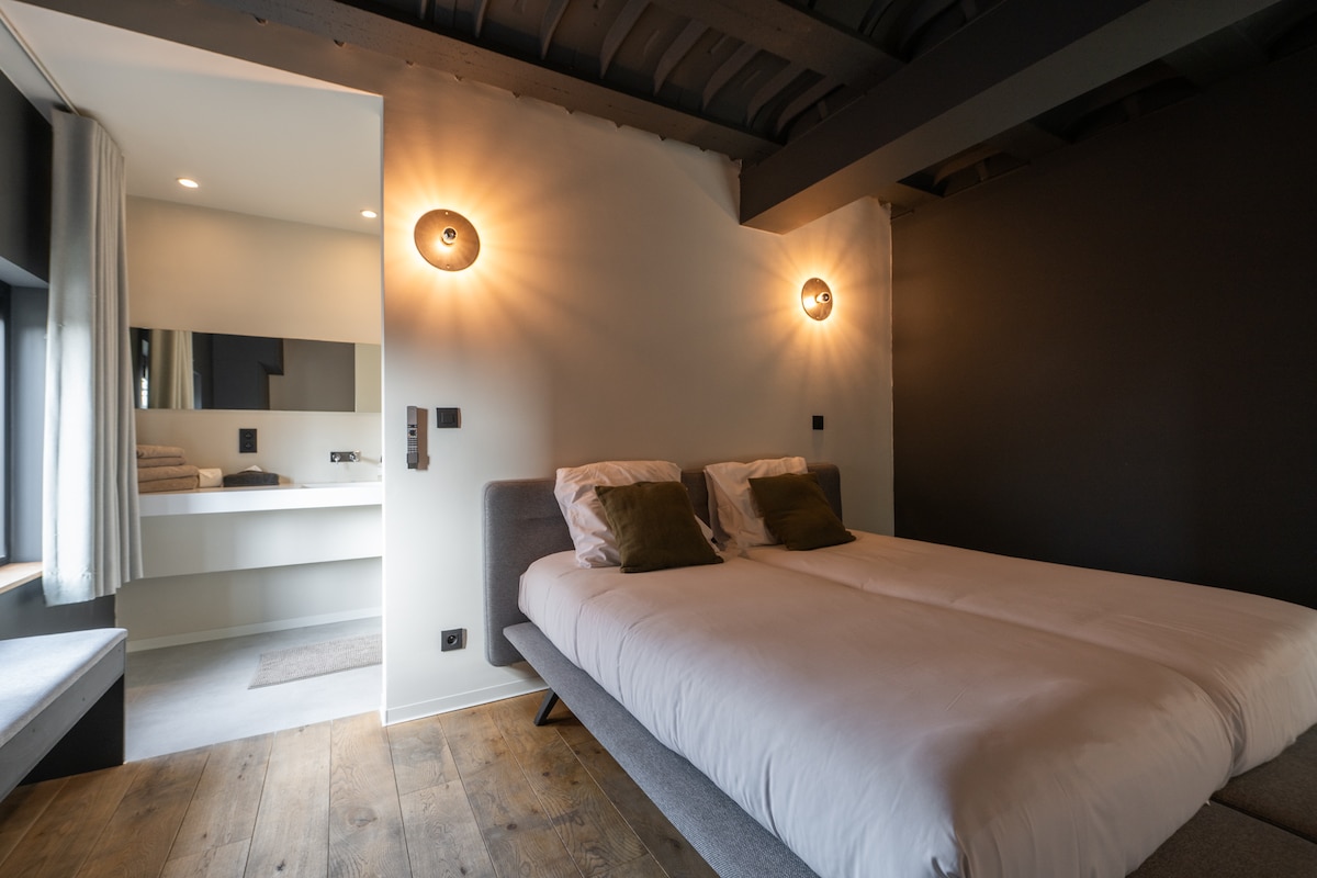 Enjoy a peaceful stay. No traffic noise. We are a recognized B&B with Flanders Tourism. 15 flights of stairs to the accommodation. One room with a king-size bed (+ bathroom) and one room with a twin bed+private bathroom.Fully equipped kitchen and living room with TV and Wi-Fi. Both bedrooms have air conditioning.Outdoor (covered) private terrace. Price: €42 per person and night (from 2026 €44). Use of the large room -for 1 person - 1 night, has a surcharge of €10