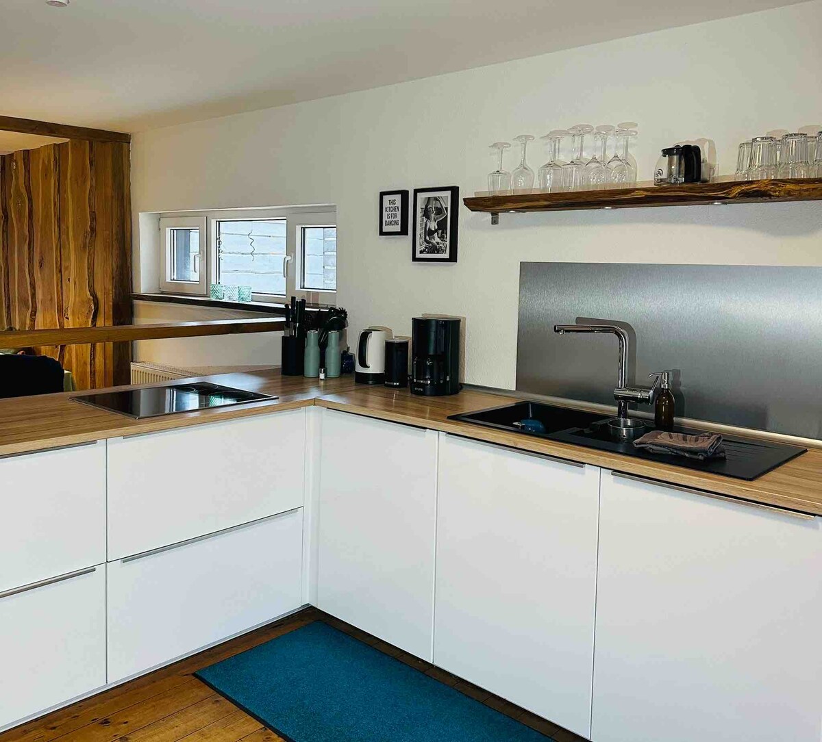 Vive momentos especiales en este alojamiento tan especial y familiar. La «sala de estar» de esta casa perteneció en años anteriores a los abuelos, que vivían y trabajaban aquí. Aquí, en la planta baja, se ha renovado y reconstruido con mucho esfuerzo. El suelo de terracota le da al apartamento un ambiente cálido y mediterráneo. En el pasillo se han conservado los azulejos históricos y la puerta de entrada de 1876. La cocina se ha convertido en un acogedor punto de encuentro.