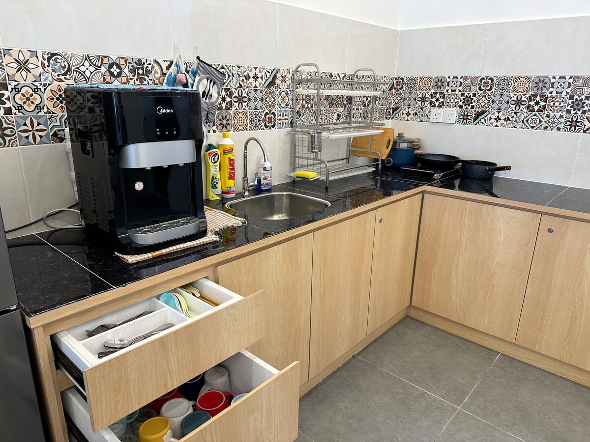 🎊 Te damos la bienvenida a BlueSky Seaview 3Bedrooms Homestay. 🔔 A corner lot Apartment Homestay. Wifi 6 en la casa: velocidad de 300 mbps, 🔔 Ubicación estratégica de lugares turísticos con restaurantes de mariscos/locales, complejos comerciales, puntos de comida rápida, lugares de atracciones. 🔔 La habitación cuenta con utensilios de cocina básicos como nevera, microondas, dispensador de agua de cuco y utensilios básicos de cocina. 🔔Los dormitorios cuentan con colchón de látex tatami con cama doble. 🔔Lavandería que ofrecemos lavadora y secadora.