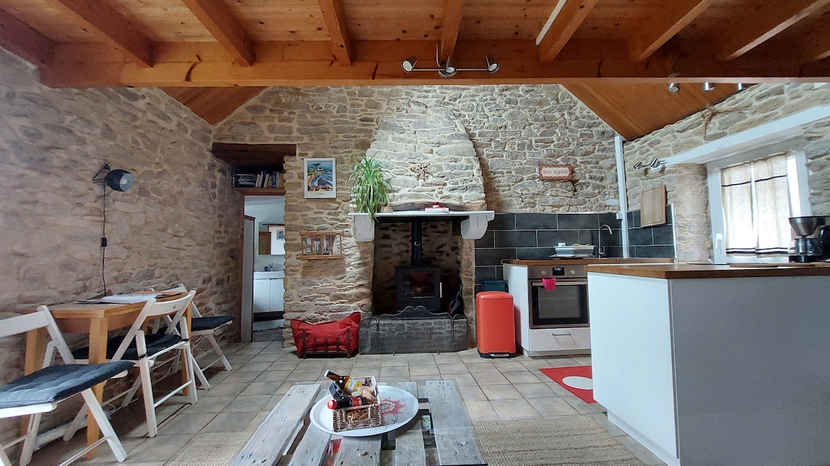Jolie maison bretonne dans les Monts d'Arrée, à proximité du lac du Drennec et ses plages aménagées, la forêt d'Huelgoat, la vallée des Saints, Morlaix et sa baie, Roscoff, Carantec, Brest, Quimper. Venez vous ressourcer dans notre maison calme et élégante, rénovée avec goût par nos soins avec des matériaux nobles et naturels ( bois, pierre, chaux et chanvre)!!Le chargement des voitures électriques et hybrides est totalement interdit ; les prises n'étant pas adaptées (risque d'incendie)….