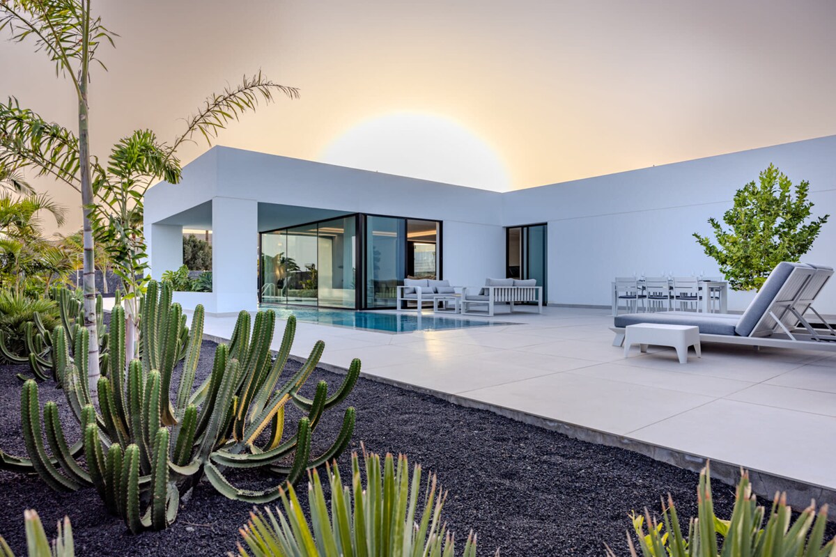 -Villa de lujo, recientemente construida de 5 habitaciones todas con baños en-suite. Está construida en un terreno de 2000m2 con estacionamiento justo al lado de la puerta principal y un punto de carga para vehículos eléctricos. -Increíbles vistas panorámicas al mar, Fuerteventura y la cadena montañosa volcánica de Los Ajaches. -Amplias terrazas y jardines, piscina climatizada de 12.5m de largo, jacuzzi, gimnasio, bbq, hoguera, billar y ping pong. -WIFI de fibra óptica y 2 Smart TVs.