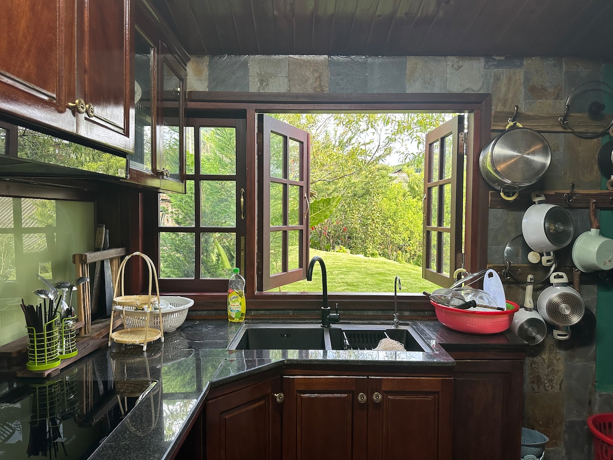 The house was made by my father and I. It is 5.8km from Sapa town center. You can cook by yourself or eat cooked by my father. Separated from the hustle and bustle of life, a peaceful place in the middle of the valley. In the morning, sip a cup of hot coffee and listen to the crowing of roosters. In the afternoon, you can go hiking to visit the village. Here is like your home, everything around is full of Northwest Vietnam. The wooden house is not modern but full of basic facilities.
