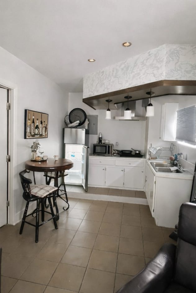 Heights Casita is a comfortable 400 square ft guesthouse with a queen size bed and lounge nook. Flat screen TV, Tívoli bluetooth audio and books. Spacious bath with shower + kitchen with fridge, stove, keurig and kettle that is fully equipped with everything you need for making yourself right at home.