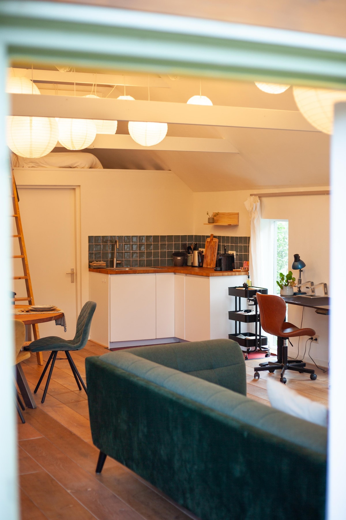 Ontspan en kom tot rust in deze knusse, charmante ruimte. Vanuit ons tuurplekje in de Achterhoek (van ruim 40m2) kijk je uit op de natuur, met zicht op het bos en twee biggen. De hele dag hoor en zie je veel vogels. Je slaapt op een knusse vide, waar je met een stevige trap naartoe kunt komen. Overig: je hebt een eigen ingang, een werk/ schrijfplekje (verstelbaar), een eigen tuintje met terras (incl bbq). Incl boeken en spellen. Luister muziek, via bluetooth of LP speler en tuur om je heen...