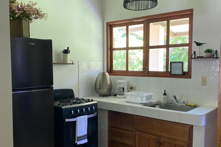This space (the entire top floor) has an ocean view and breeze with hammocks and ceiling fans. The ac is only in the bedroom. We have now finished the bottom floor of the house, which has its own kitchen and bathroom and has 2 queen beds. That space has a powerful ac to cool the whole apt. If you are traveling with more than 2 people, you can request to rent both spaces, for an additional fee. You can see the pictures of the downstairs space at Casa Limón II. Or just ask me!