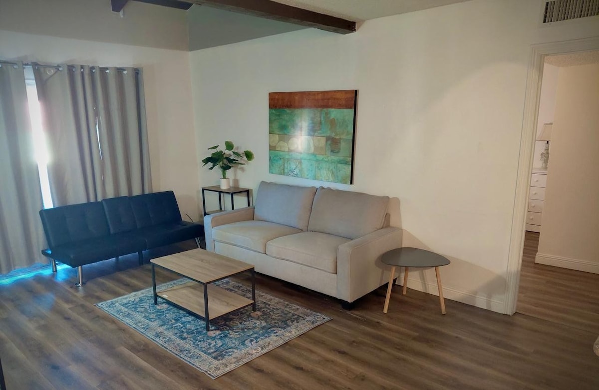 Welcome to our Hidden Oasis. This clean, inviting space features a cozy bed for two, ensuring restful nights in a peaceful environment. Enjoy the convenience of a private bathroom and a fully equipped kitchen, perfect for preparing meals and snacks. For those needing to work during their stay, a dedicated workspace is available to help you stay productive. Whether you're here for a quick getaway or an extended stay, our guesthouse offers the ideal blend of comfort and functionality.