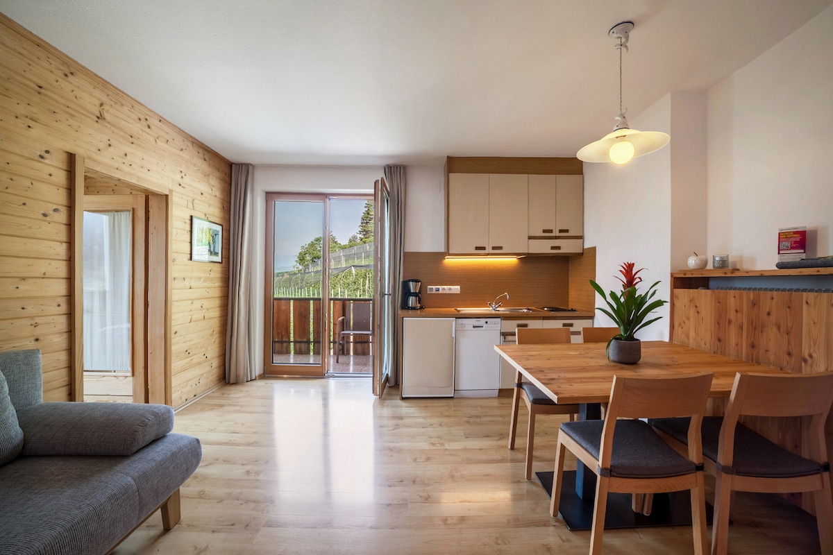 nicole apartments // sport·nature·home Modern, bright openspace apartment with a sunny south-facing balcony – perfect for your outdoor activities! Includes a fully equipped kitchen with dining area, cozy living room with streaming TV, a sofa and a king-size bed with mountain view of the “Hasenöhrl”, and a special highlight: an infrared sauna in the bathroom. Also: Free entry to the Aquaforum Latsch (pool and sauna)! Keep reading to learn more about the open space and the surroundings!