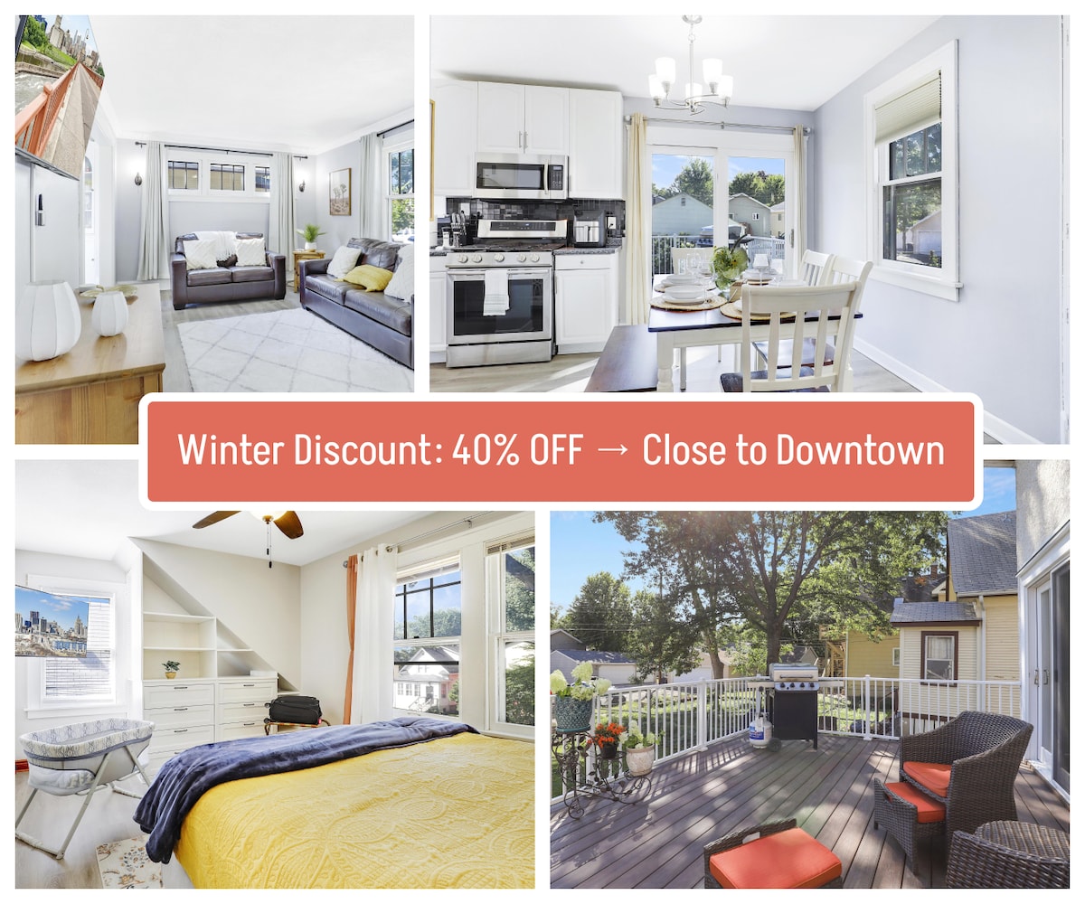 Estarás cerca de todo cuando te hospedes en esta casa céntrica a pocos pasos del tren ligero, lo que hace que el acceso a ambos centros de la ciudad sea muy fácil. Camina hasta Allianz Field, Minnesota State Fair, Flannel Jax's, Can Can Wonderland y Turf Club. Toma el tren ligero hasta Surley's Brewery o MOA. Hay muchos restaurantes auténticos y tiendas de Grand Avenue cerca. ¡Trae a tus perros y déjalos jugar en el patio trasero privado vallado! ¡Perfecto para familias que visitan estudiantes en universidades cercanas!