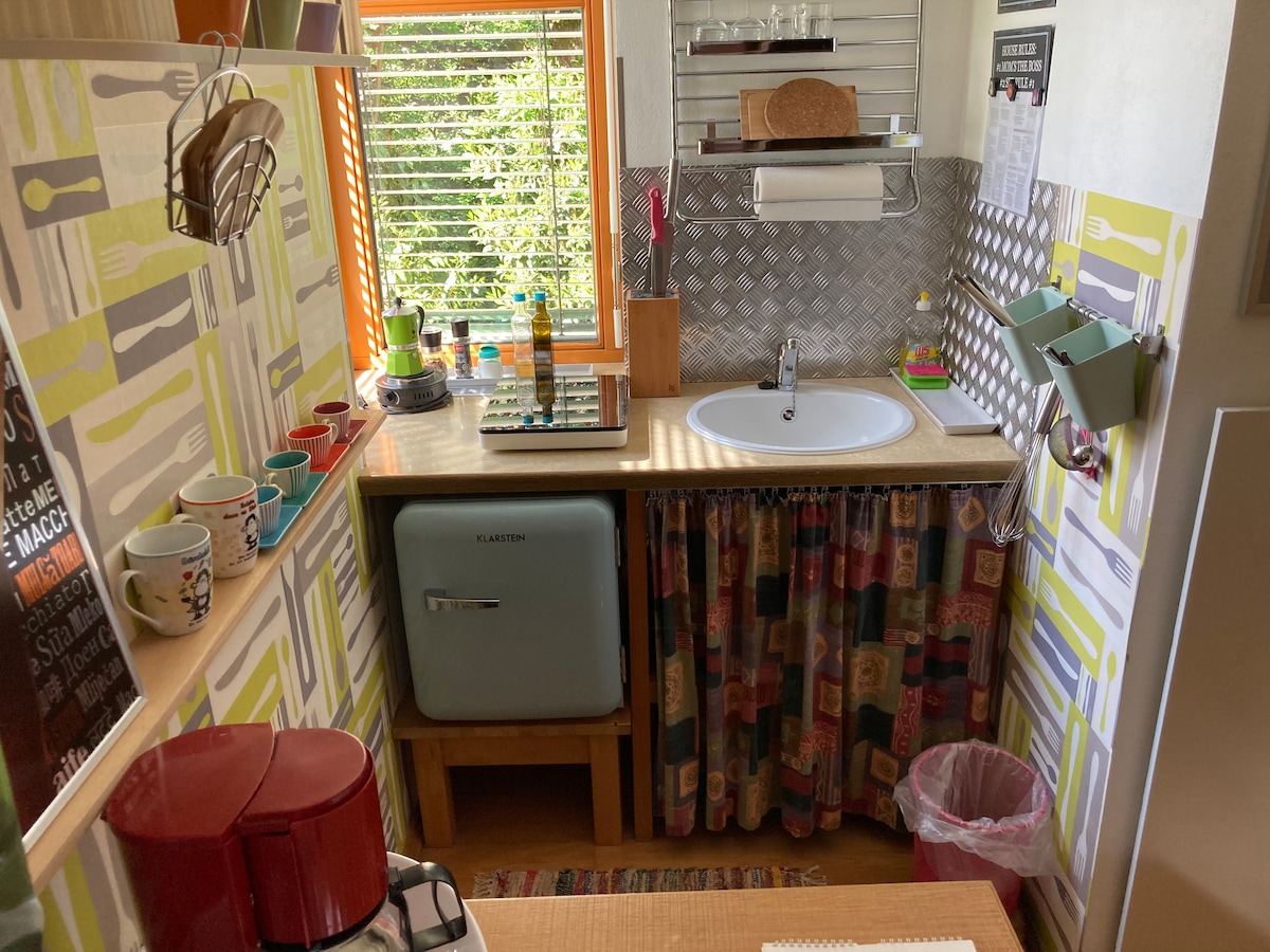 Acogedor departamento en el ático (42 m²) con una gran ventana de buhardilla que se puede usar como balcón cubierto en las tranquilas afueras de la ciudad. Debido a la ubicación central, es ideal para unas vacaciones o un viaje de negocios. Hermosas vistas a la montaña y hermosos paisajes incluidos. Lago (25 min.), estación de tren (12 min.) y casco antiguo (25 min.) a poca distancia. Gastronomía regional y muchos destinos de excursiones en los alrededores.