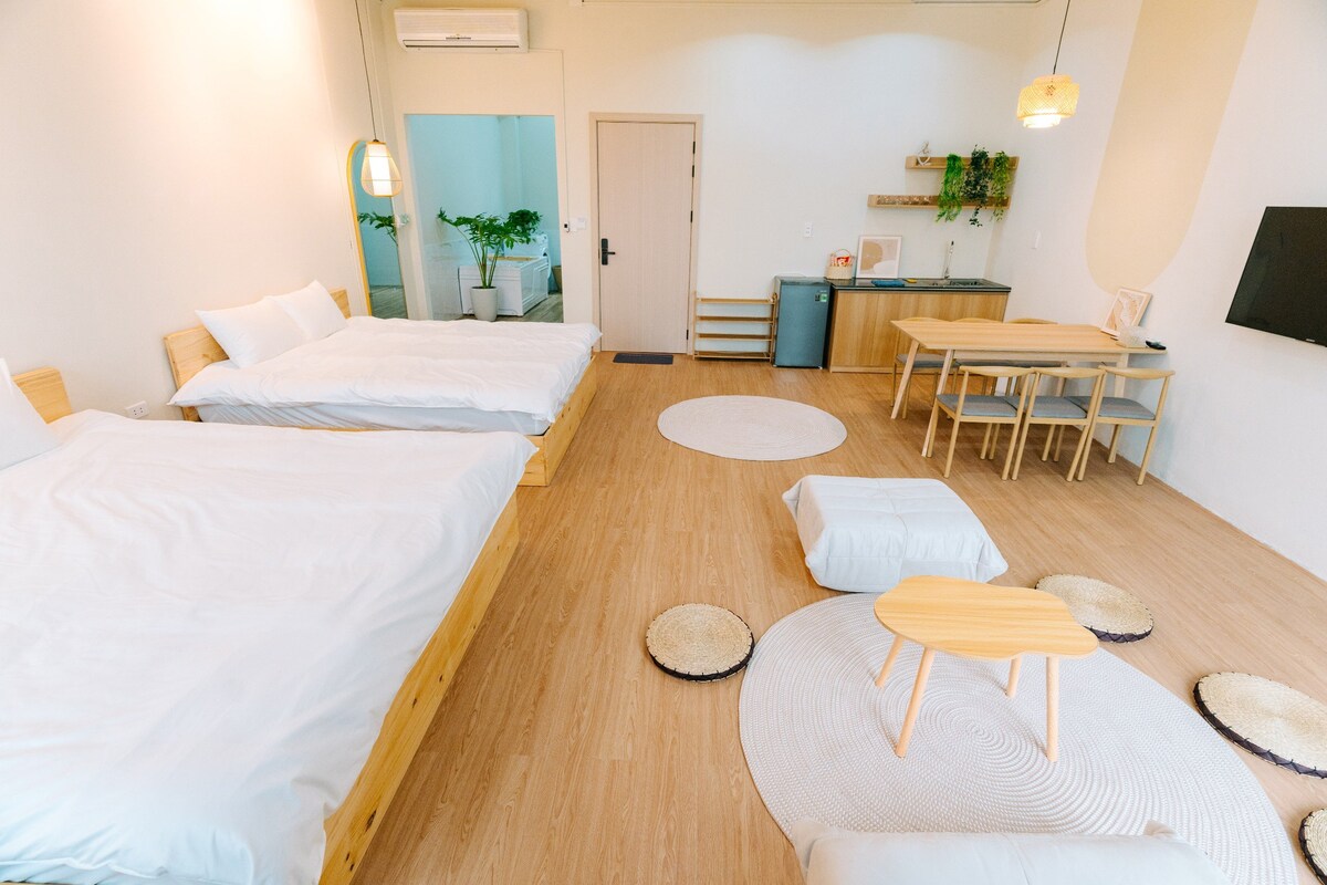 Haru Room es un departamento de 2 dormitorios (1-2 huéspedes solo usarán 1 dormitorio principal, el dormitorio pequeño está cerrado con llave) ubicado en el departamento Hoang Huy Commerce frente al centro comercial Aeon Hai Phong, rodeado de instalaciones hospitalarias, supermercados, cafeterías... 1. Ubicación privilegiada: - A 10 minutos de la Ópera Central. - A 7 minutos de la estación de Hai Phong. - A 30 minutos de la playa Do Son. Con un espacio cálido y suficientes servicios, ideal para viajeros de negocios/viajes de pareja, familia - grupo de amigos de 2 a 4 personas IG: ann.homestay