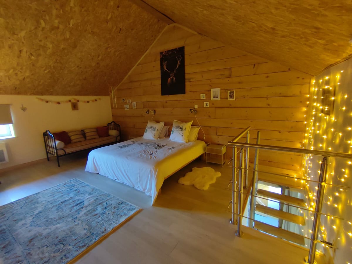 Chalet 4* exclusivement pour vous, avec Piscine Intérieure Chauffée toute l'année à 28° Espace SPA avec Jacuzzi+ SAUNA infrarouge privés Toute l'infrastructure vous est exclusivement réservée, il n'y a pas d 'autre vacancier ni propriétaire dans le chalet Sans vis à vis, le chalet est isolé au cœur de la forêt Barbecue charbon, Grande terrasse équipée Parc privé avec moutons, Echiquier géant et Slake Line pour s'amuser au grand air Le chalet a été crée par Sébastien, du gros œuvre au mobilier