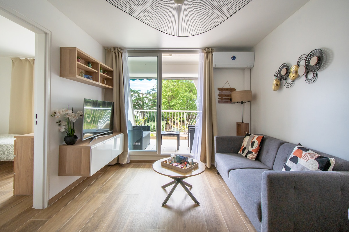 Envie d'une expérience détente à 5 minutes des plages? Découvrez notre charmant studio de 22m2, climatisé et idéalement situé. ■ Vous souhaitez profiter d'un séjour dans un quartier agréable ■ Vous recherchez un logement qui sort de l'ordinaire avec tout le confort d'un hôtel Nous vous accueillons avec plaisir ! Nos voyageurs ont appréciés: *la terrasse sans vis à vis *la place de parking privative *notre démarche écologique pour un tourisme plus durable. Voici ce que nous vous proposons