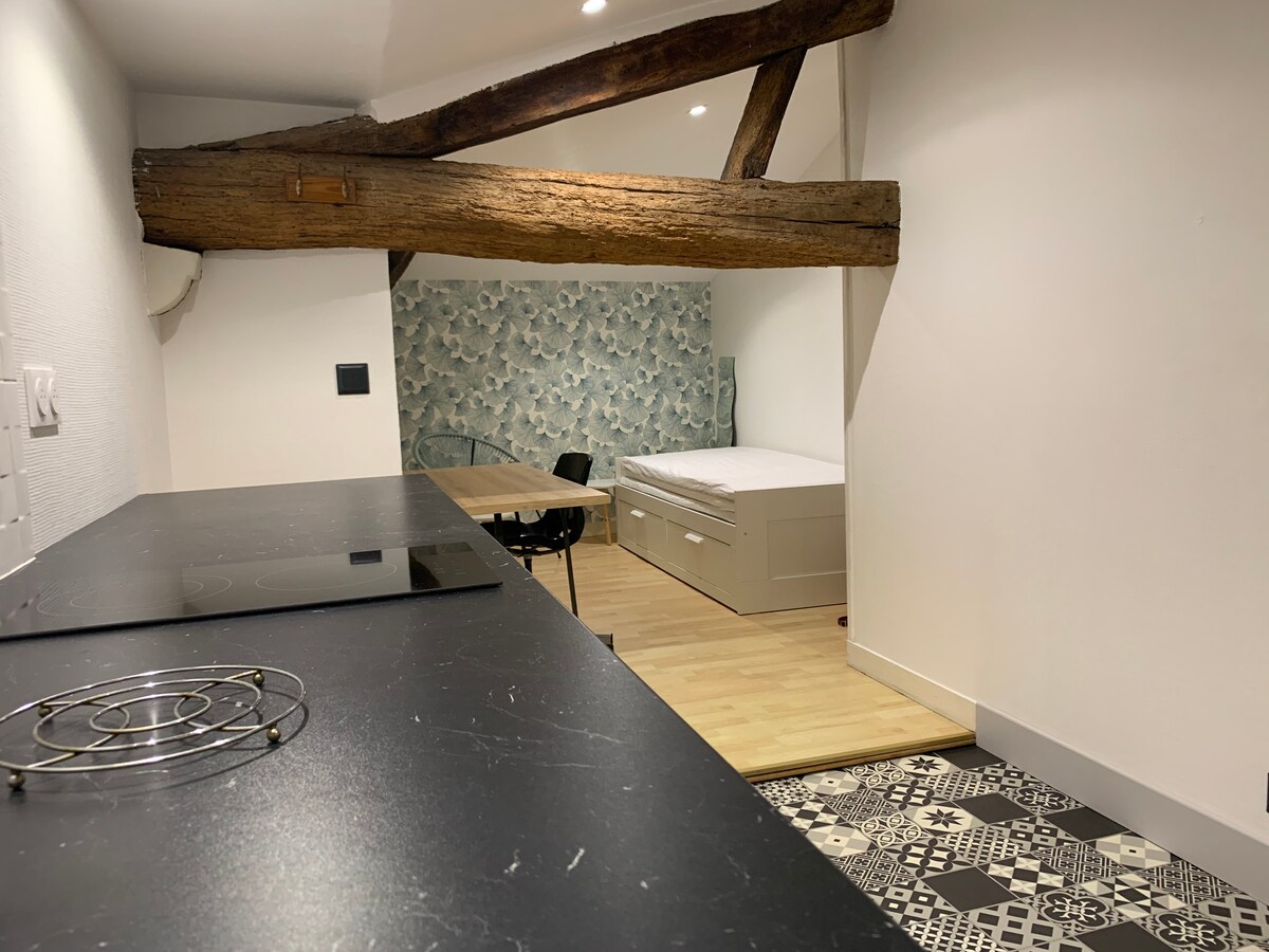 La Rochelle, situé dans le centre historique, emplacement idéal, Rue Saint-Yon, entre le vieux-port et le vieux marché, au pied de tous commerces. Dans un immeuble de caractère, calme, au deuxième et dernier étage, lumineux, LOFT Type 2 de 50m² habitable, style industriel, offrant des prestations haut de gamme, alliant le charme de l'ancien (parquet ancien, grande hauteur sous plafond, pierres apparentes) et du contemporain. Entièrement équipé ! (Poêle à bois hors service)