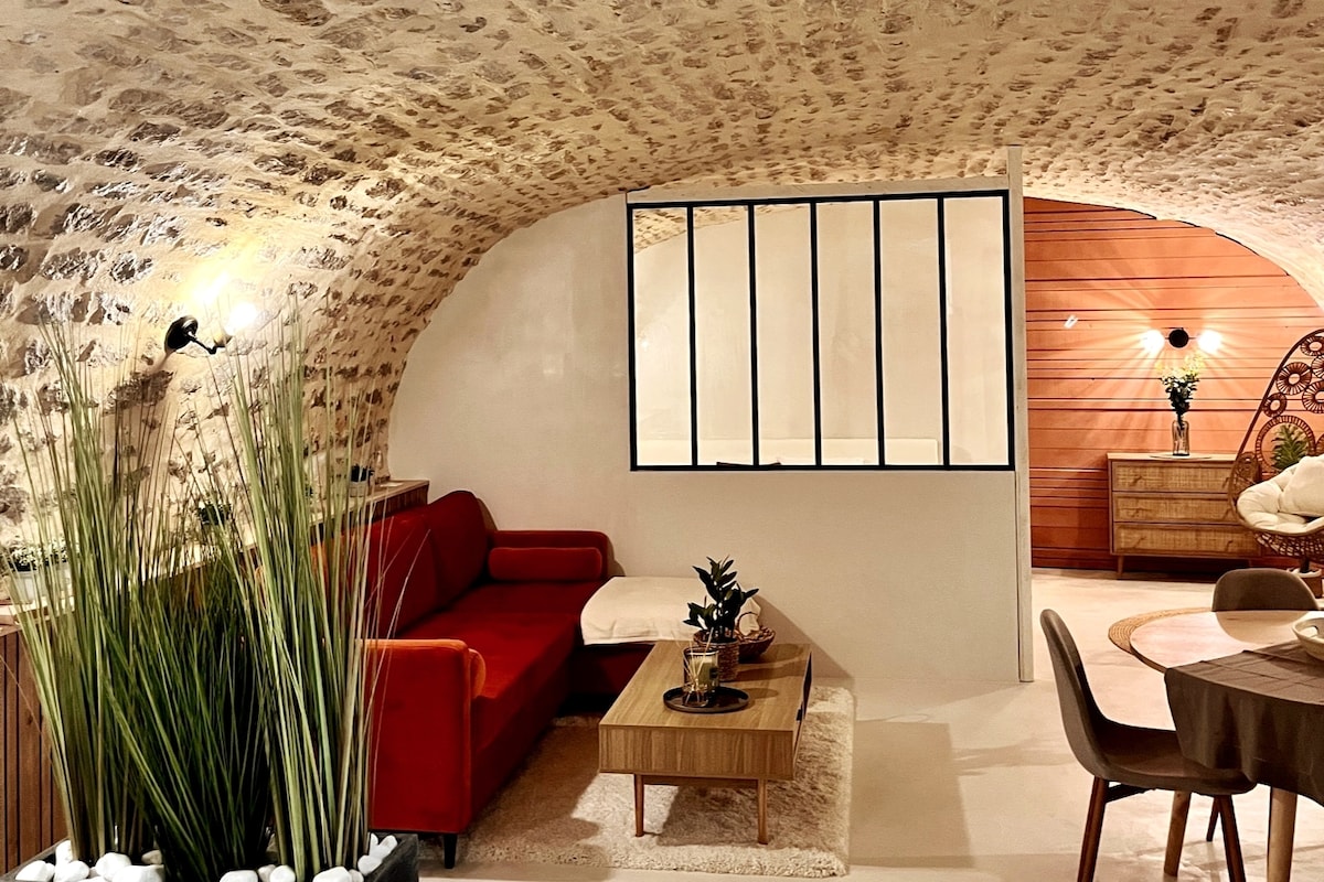 Viva una escapada insólita en una antigua bodega abovedada equipada con bañera de hidromasaje. Un paréntesis romántico a 5 minutos del Futuroscope y de la Arena para vivir un momento de placer y relajación.
