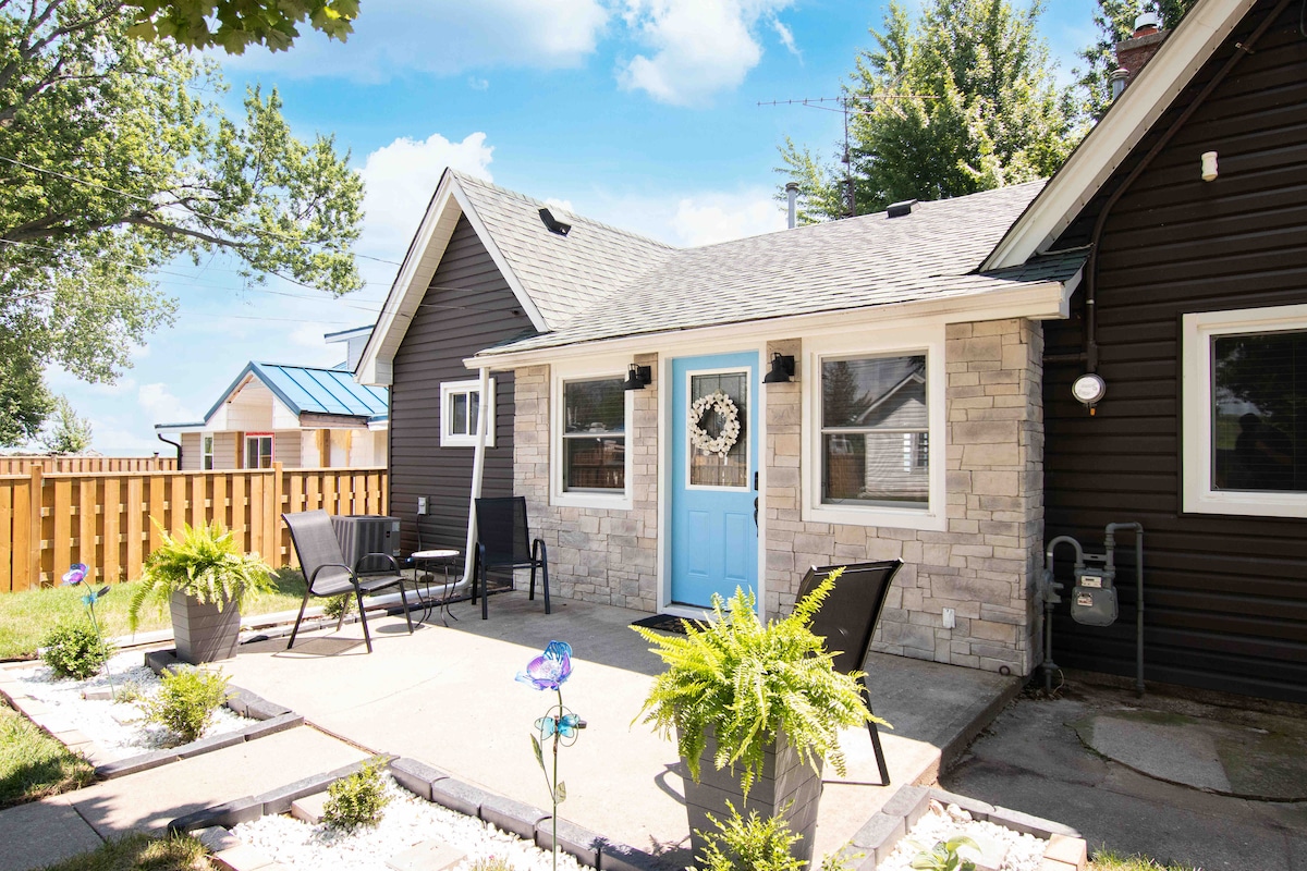 Esta suite se utilizará como alternativa a una pequeña habitación de hotel ubicada en el segundo piso de esta casa histórica. Hay una entrada privada, una vez que subas las escaleras a tu suite que incluye una zona de dormitorio, espacio para comer, cocina pequeña con fregadero, nevera bar, microondas, hervidor de agua y cafetera, un baño completo y lavadora/secadora. No hay horno ni fogones en esta suite; no es grande, pero tiene todo lo necesario dentro de un espacio acogedor. Hay dos zonas comunes para sentarse y relajarse fuera de tu espacio privado. Tu suite está a solo dos manzanas del lago y del parque junto al lago y a solo 10 minutos a pie de restaurantes, bares y del muelle de Kingsville Jiiman. ¡Disfruta!