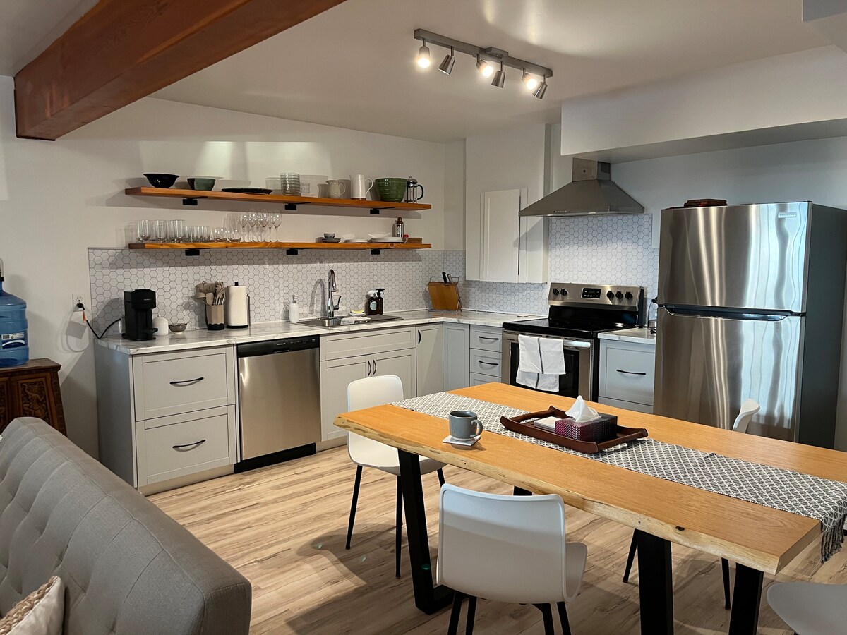 «A Suite Above» es una puerta de entrada a la aventura adecuada para todas las estaciones. Puedes disfrutar de una vista al lago Shuswap en tu terraza privada con la barbacoa de gas natural: ¡nunca te quedarás sin gas! La cocina está totalmente equipada con platos, utensilios, vasos, tazas, cafetera, hervidor de agua y otros servicios que te permitirán comer en la terraza o en la mesa del comedor de la suite. La suite tiene aire acondicionado y la sala de estar tiene una acogedora chimenea de gas natural para esos días y noches más fríos.