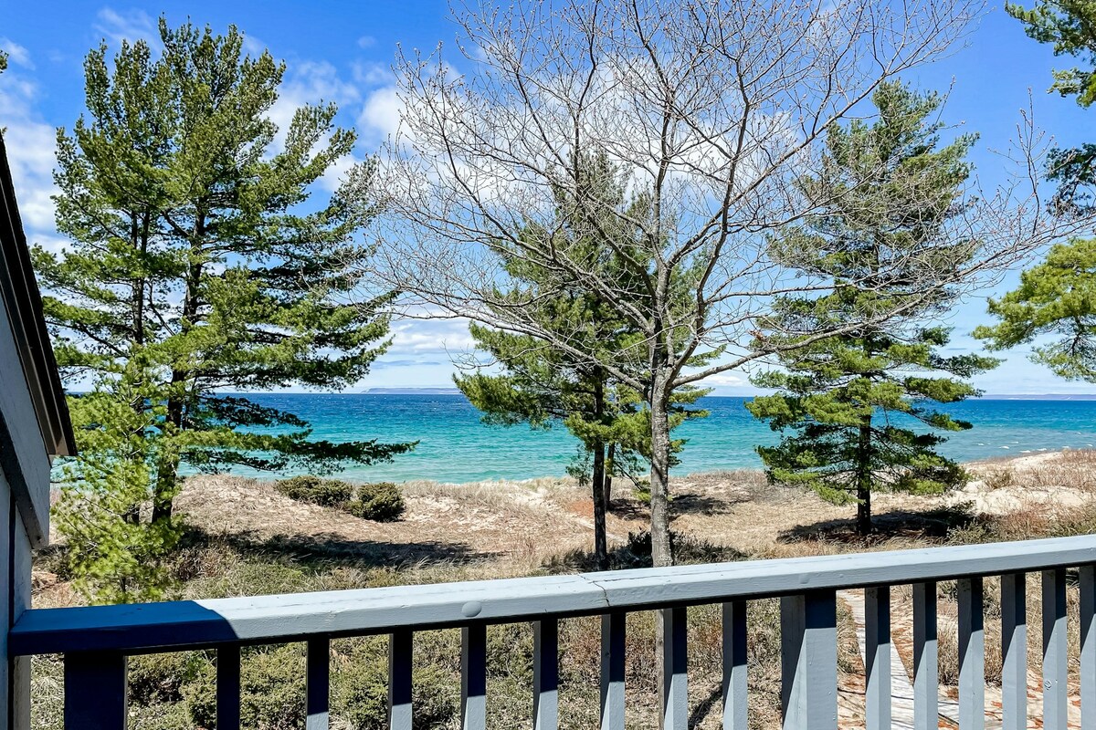 Bienvenido a tu hogar lejos de casa mientras exploras la belleza natural del norte de Michigan. Este apartamento de 2 dormitorios y 2 baños recientemente renovado ha sido cuidadosamente diseñado pensando en la comodidad y el estilo. Pasa el rato en la sala de estar con amplios asientos y un televisor inteligente con cable y aplicaciones de streaming. Relájate en el patio cercado entre los pinos, con vistas al lago Míchigan. Disfruta de comidas caseras en una cocina totalmente equipada. ¡La ubicación es perfecta para acceder fácilmente a todo lo que ofrece la zona!
