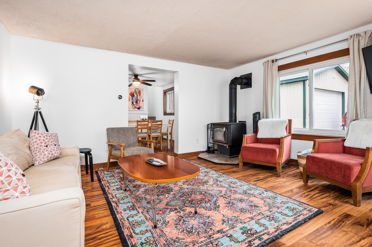 Esta casa centenaria, bellamente remodelada, fue derribada hasta los cimientos y ahora es esencialmente nueva. La impresionante cocina nueva cuenta con cocina de gas y electrodomésticos nuevos, perfectos para cocinar y entretener. El espacioso y nuevo baño cuenta con una lujosa ducha a ras de suelo y una bañera para sumergirse y relajarse al máximo. Televisores inteligentes, wifi de alta velocidad y una acogedora chimenea de gas garantizan tu comodidad. No te pierdas el porche cerrado: ¡es el lugar perfecto para relajarte y disfrutar de los alrededores!