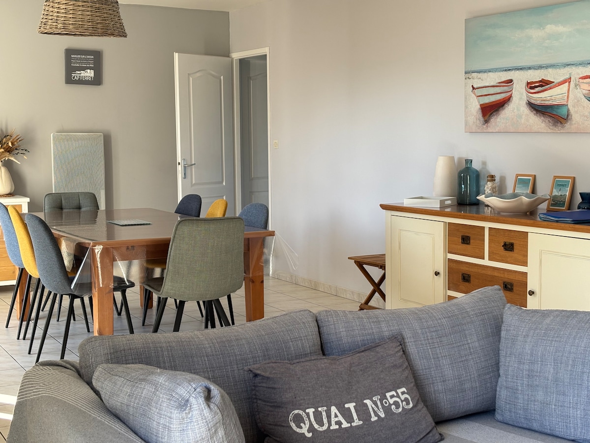 Venga a descubrir la cuenca de Arcachon y todos sus pequeños lugares preservados. Disfrutará de un apartamento de 55 m² totalmente equipado, un gran dormitorio y una terraza de 30 m². Con una ubicación ideal en el pueblo, se puede ir andando o en bicicleta a todas partes. La playa se encuentra al final de la calle a 50 m, la plaza del mercado a 200 m y el centro de la ciudad con todos sus comercios de proximidad a 500 m. A 600 metros del puerto de ostras, ideal para disfrutar de una bandeja de mariscos. Por supuesto, el océano se encuentra a 8 km.