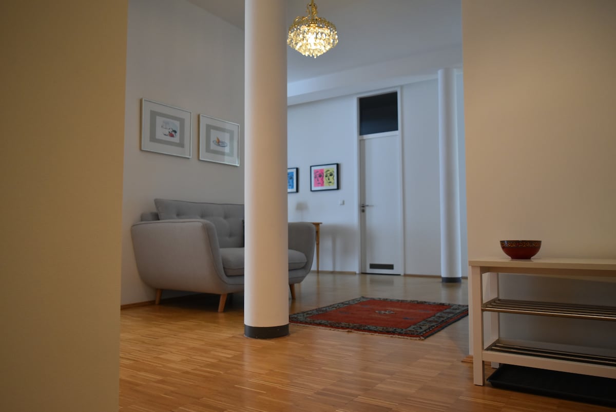 „Viel geräumiger als erwartet!“ sagen Gäste. Modernes Loft , hochwertig ausgestattet, Echtholzfußboden mit Fußbodenheizung. 3 große, lichtdurchflutete Räume, stilvoll eingerichtet auf geräumigen 73qm, 8min zu Fuß zum Bahnhof und 12 min zur Innenstadt. Leben im Industrie-Loft! Außergewöhnliche Location mitten im "graphischen Viertel", dem ehemaligen Verlags- & Druckereiviertel Leipzigs. Die ehemalige Druckerei wurde liebevoll vom uns umgestaltet. Besonderes Flair des historischen Gebäudes.