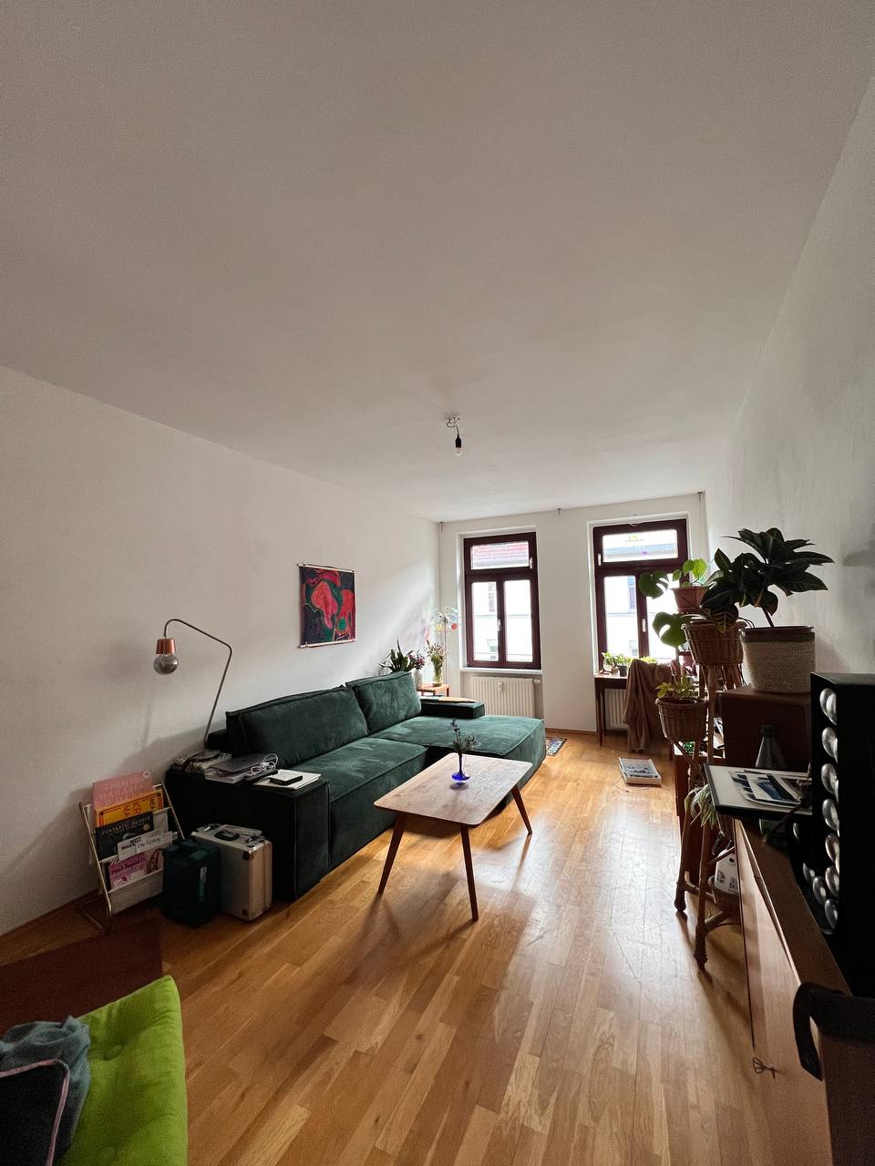 Die 80 qm große Wohnung liegt in der belebten Leipziger Südvorstadt mit zahlreichen Bars, Restaurants, kukturellen Angeboten sowie Naherholungsgebieten wie dem Auwald, der z.B. zu einerKanufahrt zum Cospudener See einlädt. Die Bushaltestelle vor der Tür gibt beste Verbindung nach Plagwitz, Connewitz, Reudnitz und Innenstadt. Die Wohnung liegt im vierten Stock mit tollem Ausblick über die Stadt und viel Tageslicht. Der nächste Supermarkt in 2 Minuten zu Fuss erreichbar.