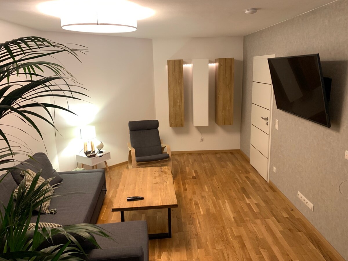 Unser Long-Stay-Appartement bietet ein Zuhause auf Zeit mit allen Annehmlichkeiten eines Hotels. Ruhige Lage in einer Seitenstraße im Nebengebäude, dennoch zentrumsnah · Getrennter Wohn- und Schlafbereich · King-Size-Bett (1,80 m x 2,00 m) mit Topper und bettumspannender Kuscheldecke · Schrankwand mit Pantry, Wäsche- und Kleiderfach · Flatscreen-TV mit SKY und internationalen Sendern