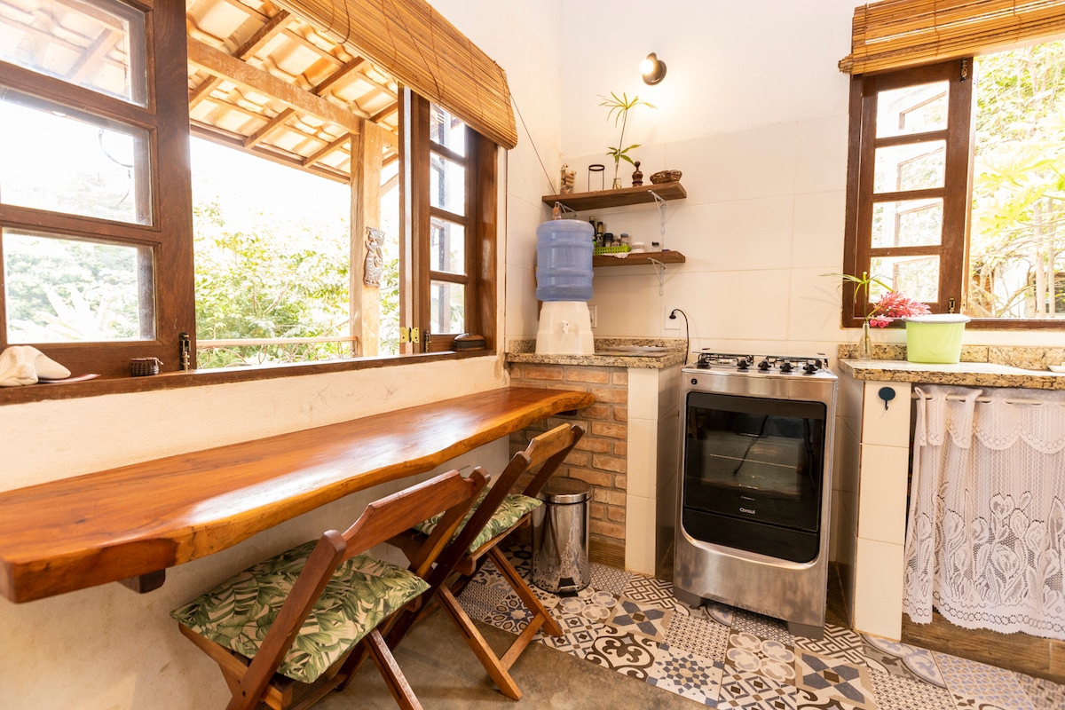 Esta casa tiene la gran ventaja de estar en el centro y al mismo tiempo inmersa en la naturaleza. La practicidad de estar en el centro con la tranquilidad y el silencio de la naturaleza es lo que define a esta casa. Se camina 5 min en el plano (sin ninguna pendiente) y se llega a los principales restaurantes, mercados, agencias y farmacias. El vecindario es muy tranquilo y como la casa está frente a un bosque tenemos varias aves aquí. Camino al "Ribeirão do Meio", uno de los principales atractivos de Lençóis.