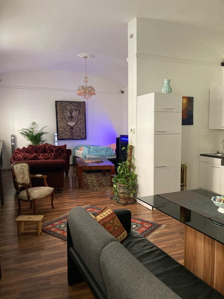Mi acogedor departamento está ubicado en el corazón de Viena. El apartamento estudio está situado en el cuarto piso y es accesible en ascensor. Hay una gran sala de estar - y dormitorio con una cómoda cama doble. La cocina está equipada con estufa, horno, nevera y comedor para dos personas (la mesa se puede ampliar a un tamaño más grande). Además, hay un baño separado con ducha y bañera. La excelente conexión con el transporte público está más o menos a la vuelta de la esquina. El autobús número 13A lleva al distrito 7 y a la calle comercial más grande de Viena - la Mariahilferstrasse - y el tranvía número 5 y 33 te llevan al centro o incluso a una de las estaciones de tren más grandes de Viena - el Westbahnhof. El metro U2 Rathaus está a solo siete minutos, el U6 está a diez minutos a pie. El departamento está ubicado en una zona con muchos restaurantes, bares y galerías. Merece la pena visitar el típico Café Florianihof vienés. Diagonal al departamento también está el galardonado restaurante GU que ofrece auténtica cocina china. El Theater an der Josephsstadt y algunos parques están cerca y puedes ir caminando al Ayuntamiento, al Parlamento, al centro, etc. La lavandería más cercana es la "WASCHCENTER TOP" en Ottakringer Straße 52, 1170 Wien Hernals Teléfono: 069 911525608 / waschcentertop.at