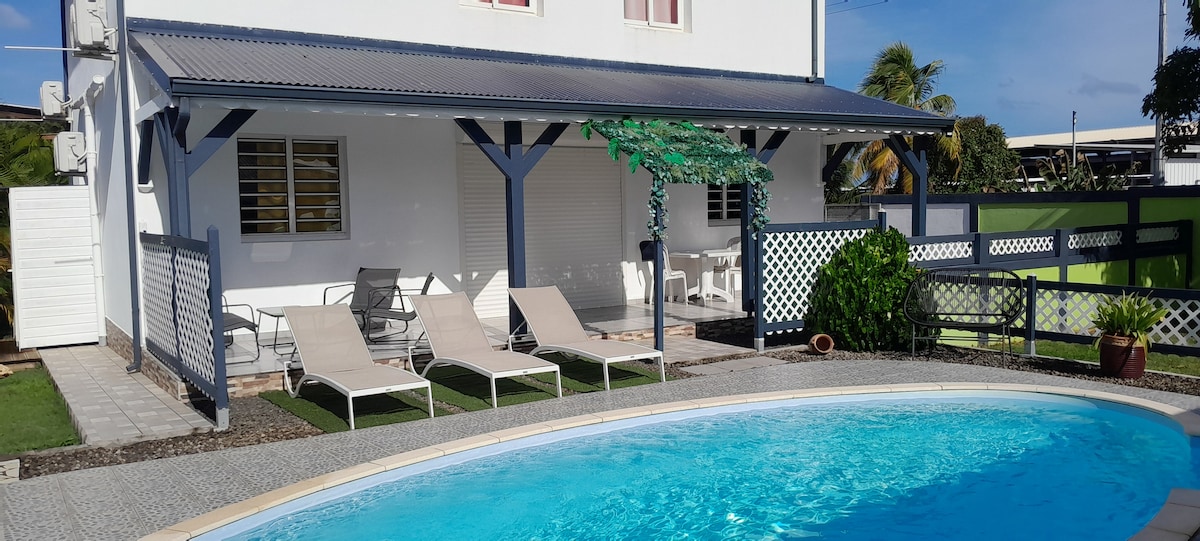 Casa reciente ( 2016), con piscina. Amplia terraza con vistas abiertas y piscina. Situada a 5 minutos en coche del pueblo de Gosier, a 10 minutos de las playas de Gosier y a 20 minutos de Sainte Anne. También está cerca de la tierra baja. ¡Idealmente situada para visitar la tierra baja o la tierra alta, ya que está fuera de los atascos diarios!