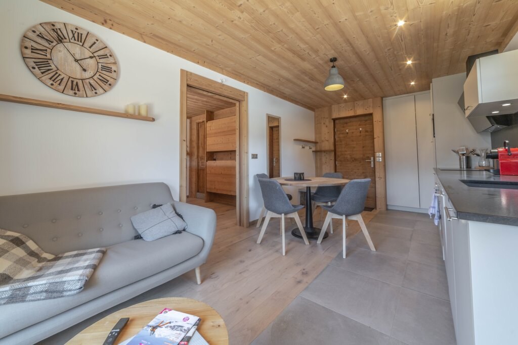 Apartamento clasificado 3*** y «Label Méribel». Excelente ubicación y muy buena exposición a 50 metros de las pistas (Plateau Rond-Point). Cerca de las tiendas, este apartamento de 2 habitaciones totalmente renovado incluye una cocina equipada (lavavajillas, microondas con grill, Nespresso, placas de inducción…), zona de comedor, sofá cama en la sala de estar. Dispone de un dormitorio con cama de matrimonio y cuarto de baño con ducha (lavadora). La decoración refinada le seducirá. Amplio balcón accesible desde el salón y el dormitorio. Aparcamiento.