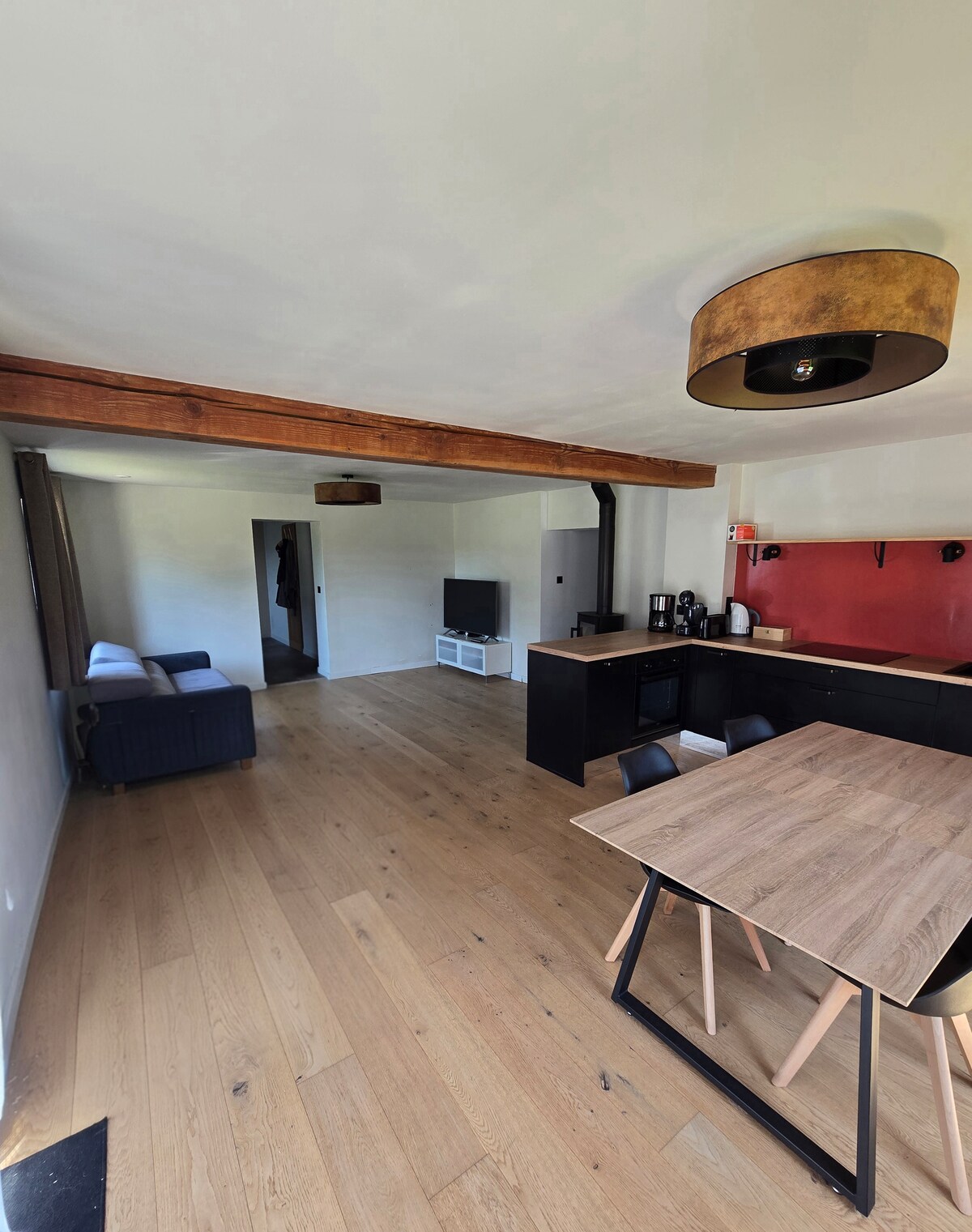 Nuestra casa se creó en nuestro antiguo establo. Se encuentra en nuestra casa de campo, antigua granja lo más cerca posible de nuestros animales en un terreno de 10.000 m² sin vecinos. Esta casa de campo de 40 m² estilo loft consta de un dormitorio con una cama de 160/200, una sala de estar con sofá cama, una cocina totalmente equipada, un baño y un aseo independiente. Dispondrá de una terraza privada y tendrá acceso a toda la propiedad. Animales: solo gatos.