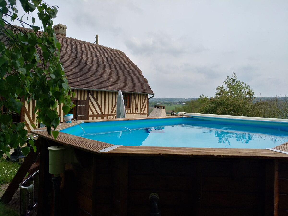 Jolie maison pleine de charme, isolée au cœur du Pays d'Auge, très confortable et décorée patiemment avec amour. Bénéficiant d'un exceptionnel panorama vallonné typique de la campagne normande, située au milieu d’une prairie et à l’orée d’un bois, vous découvrirez un endroit de toute beauté. Le paysage vous apportera calme et sérénité. Un vrai havre de paix… Vous profiterez du parfum des rosiers et des pommiers de son jardin l’été et de la chaleur de la cheminée l’hiver.