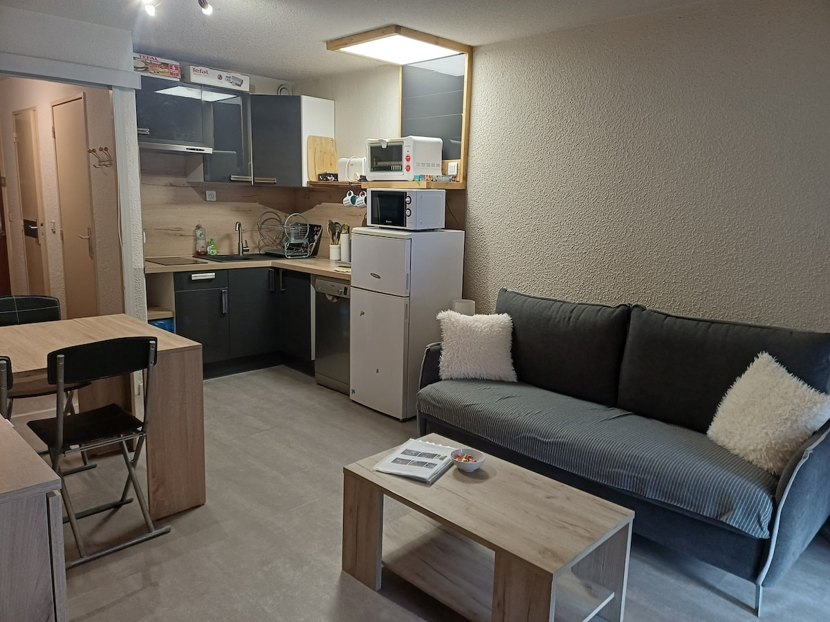 Bienvenue dans cet appartement parfait pour un séjour a la montagne! Pour 4 personnes, il dispose d'un coin montagne avec 2 lits superposés 90x190 cm et un clic clac dans le salon 140x190cm et d un local a ski Au pied des pistes,a quelques pas des remontées mécaniques,proche des commerces,profitez d'un séjour dans cette station familiale La résidence est équipée de : - piscine chauffée en haute saison(fermée le samedi) - sèche linge dans la résidence payant interdiction de fumer en intérieur