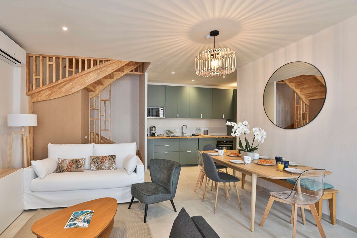 Treat yourself to an authentic getaway in Les Sables d’Olonne! This fully renovated 100 m² home welcomes you right on the harbor, in the heart of the town center. Its warm atmosphere and thoughtful design make it the perfect place for a relaxing break. Enjoy the furnished rooftop terrace—ideal for a morning coffee at sunrise or an evening aperitif while taking in the lively harbor views. A charming spot where urban energy meets coastal serenity.
