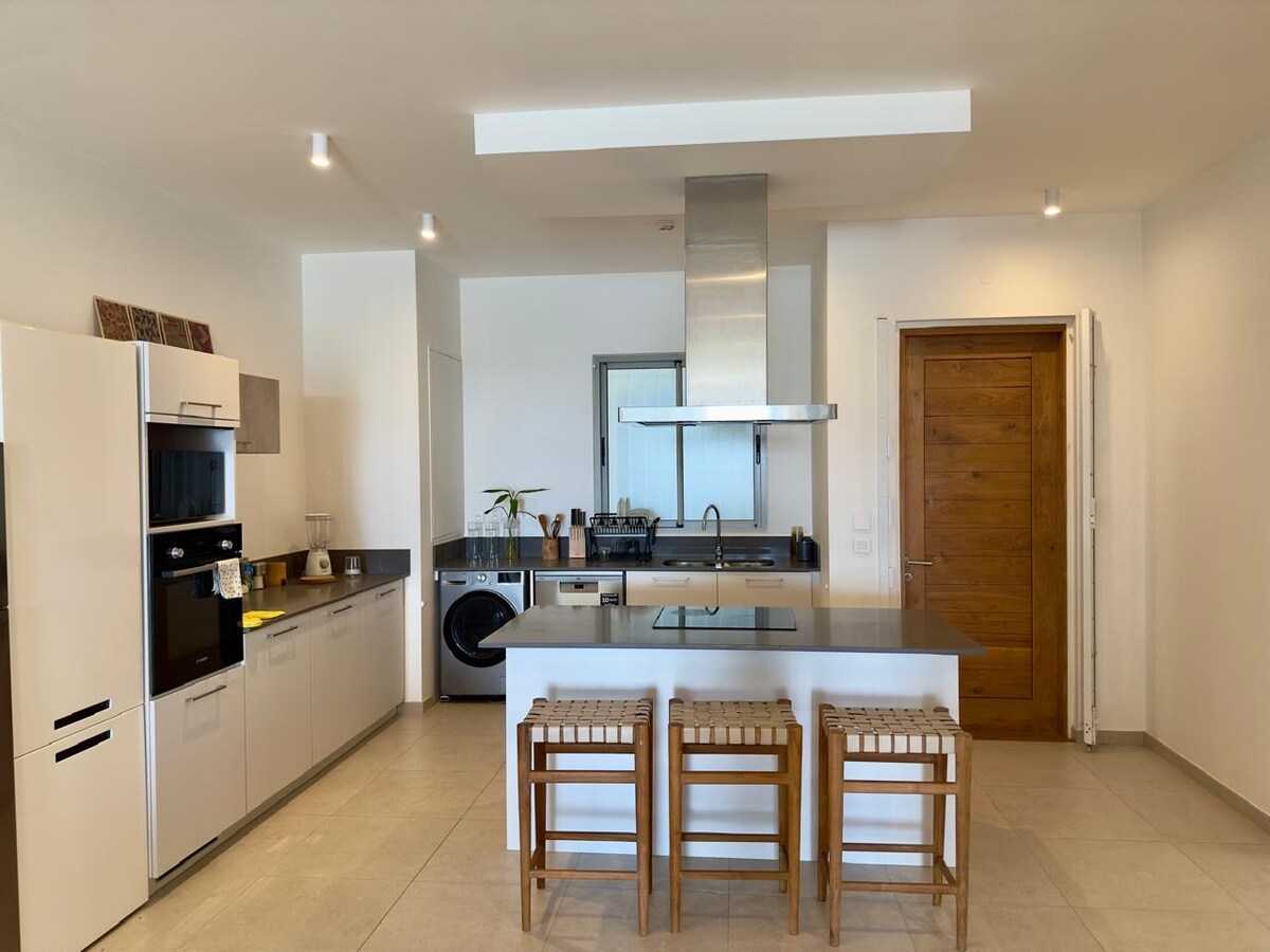 Tu propia suite privada y bien equipada en el piso superior de una villa grande y moderna. Disfrutá de total privacidad en un piso alto con entrada independiente. Relájate en una bañera única en el piso mientras disfrutas de impresionantes vistas panorámicas del mar, la capital y las montañas. También tendrás acceso gratuito a todos los servicios compartidos: cocina principal🍳, gimnasio💪, pileta🏊♂️, salas de estar🛋️, jacuzzi ♨️ (sesión con calefacción a 10 €) y estacionamiento🚗.
