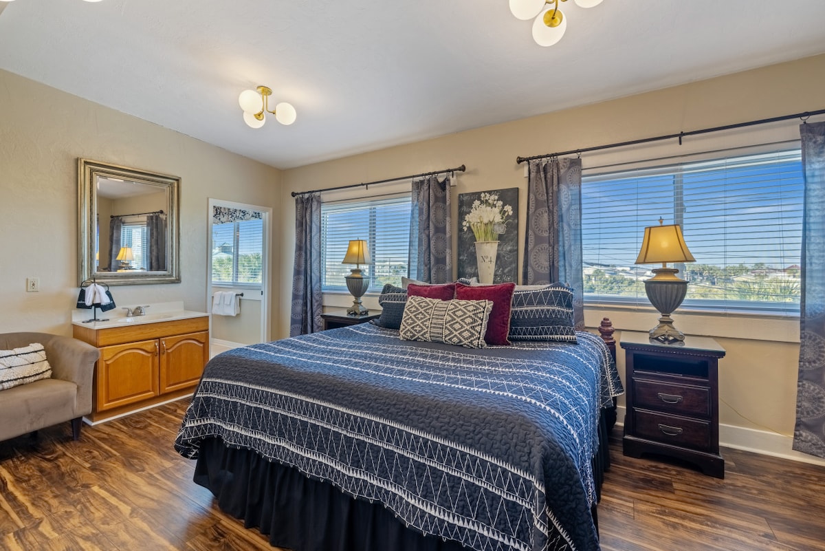 Impresionantes vistas del Golfo de México desde tu patio privado y desde esta unidad de planta baja. Esta unidad recientemente renovada está repleta de espacios inteligentes y coloridas piezas decorativas. La cocina totalmente equipada con una isla de bloques de carnicería hecha a medida seguramente complacerá a cualquier chef. La cama king California de espuma viscoelástica te asegurará un sueño de ensueño tranquilo. Estás a una cuadra de los restaurantes, tiendas y locales de música de Dock Street. ¡Ven a Cedar Key y explora la hermosa vida isleña!