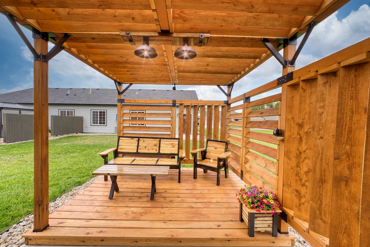 Welcome to your peaceful Southside retreat! This 1,488 sq ft ranch offers comfort and convenience with 2 king bedrooms, 2 baths, and a business suite with twin bed and Wi-Fi. Enjoy a cozy living room with 65” TV, fenced yard, deck, and 2-stall garage. Dogs welcome (max 2; see rules under "Other Details to Note"). Sleeps 5 max — 5th guest +$50/night. Ideal for families, professionals, and travelers seeking quiet relaxation near Sioux Falls attractions.