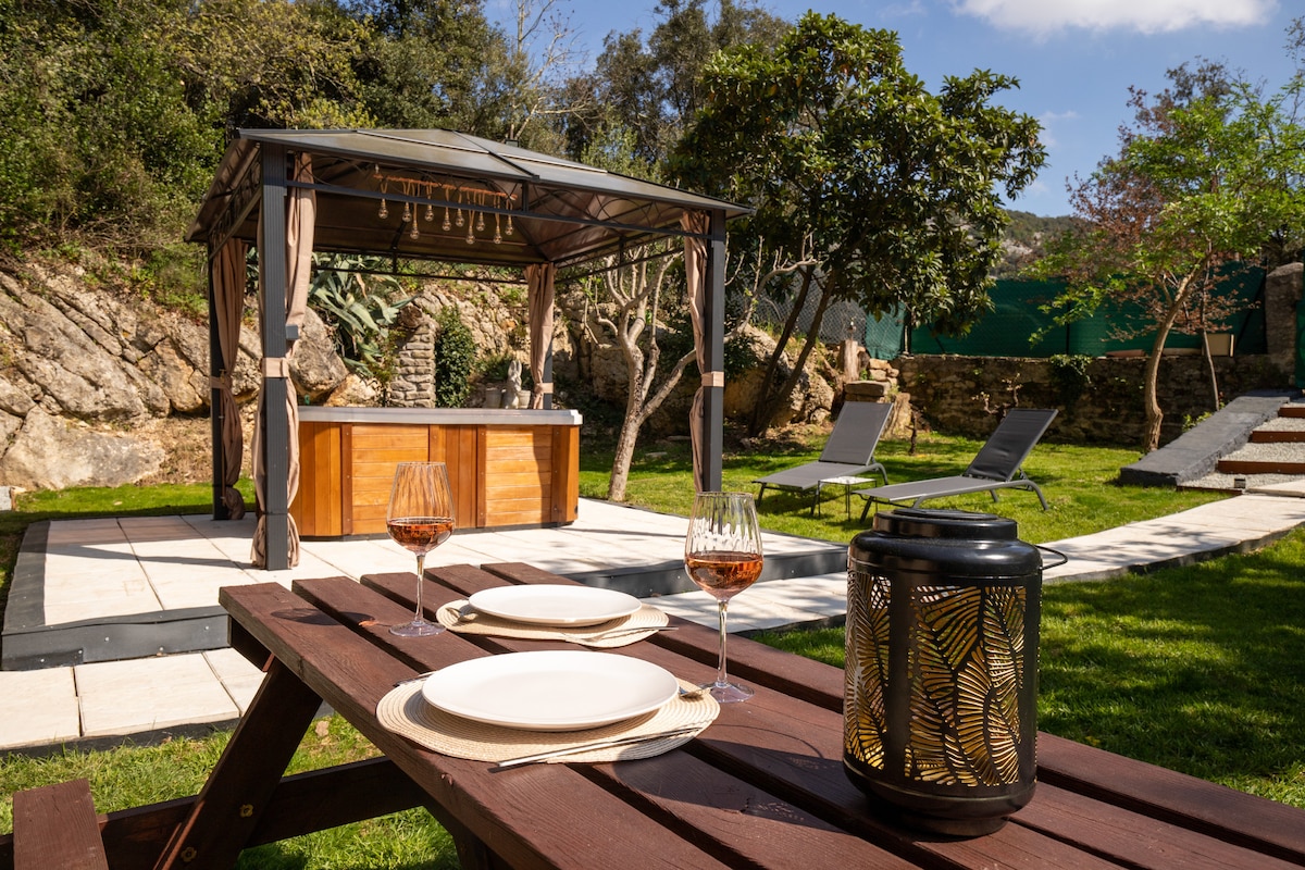 Bienvenue Ô Jacuzzi du Mazet, un havre de paix niché dans la garrigue sans vis-à-vis à quelques minutes de Montpellier. Idéal pour une escapade romantique, une pause détente entre amis ou un séjour en famille, ce lieu unique vous invite à profiter d’un cadre chaleureux et ressourçant. Imaginez vous : - Vous relaxer dans un jacuzzi privatif bouillonnant à 37°C sous les étoiles. - Vous détendre dans une chambre douillette avec cheminée, pour des soirées cocooning au coin du feu devant une série.