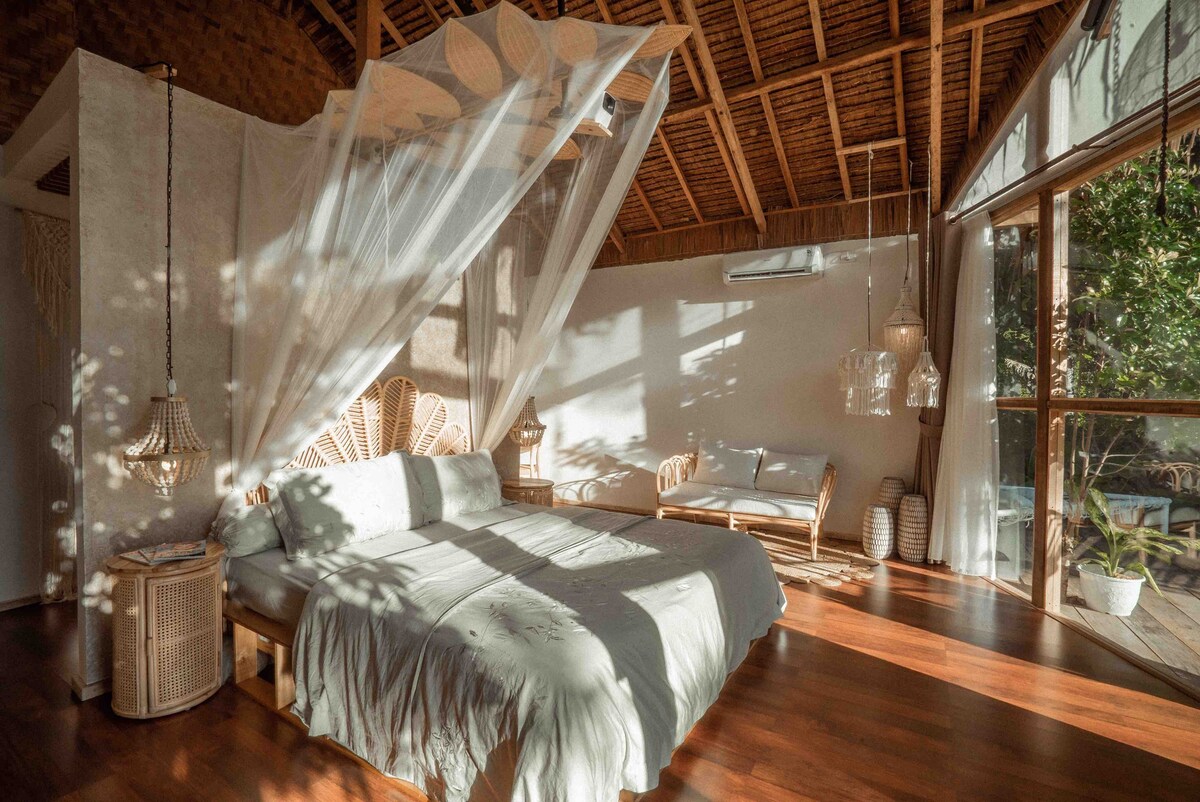 Have 2 bedrooms, queen beds and single beds, 1 bathroom, outdoor kitchen. Driving to.. 1min: coffee shop ☕️ 13min: to the beach 🏖️ 7min: Big supermarket (Suzuya) 9min: Masjid Raya Baiturrahman 🕌 12min: Ulee Lheue Port 🚢 5min: Minimarket (Alfamart) 6min: traditional market 26min: International Airport Sultan Iskandar Muda ✈️ 17min: Station bus 🚍