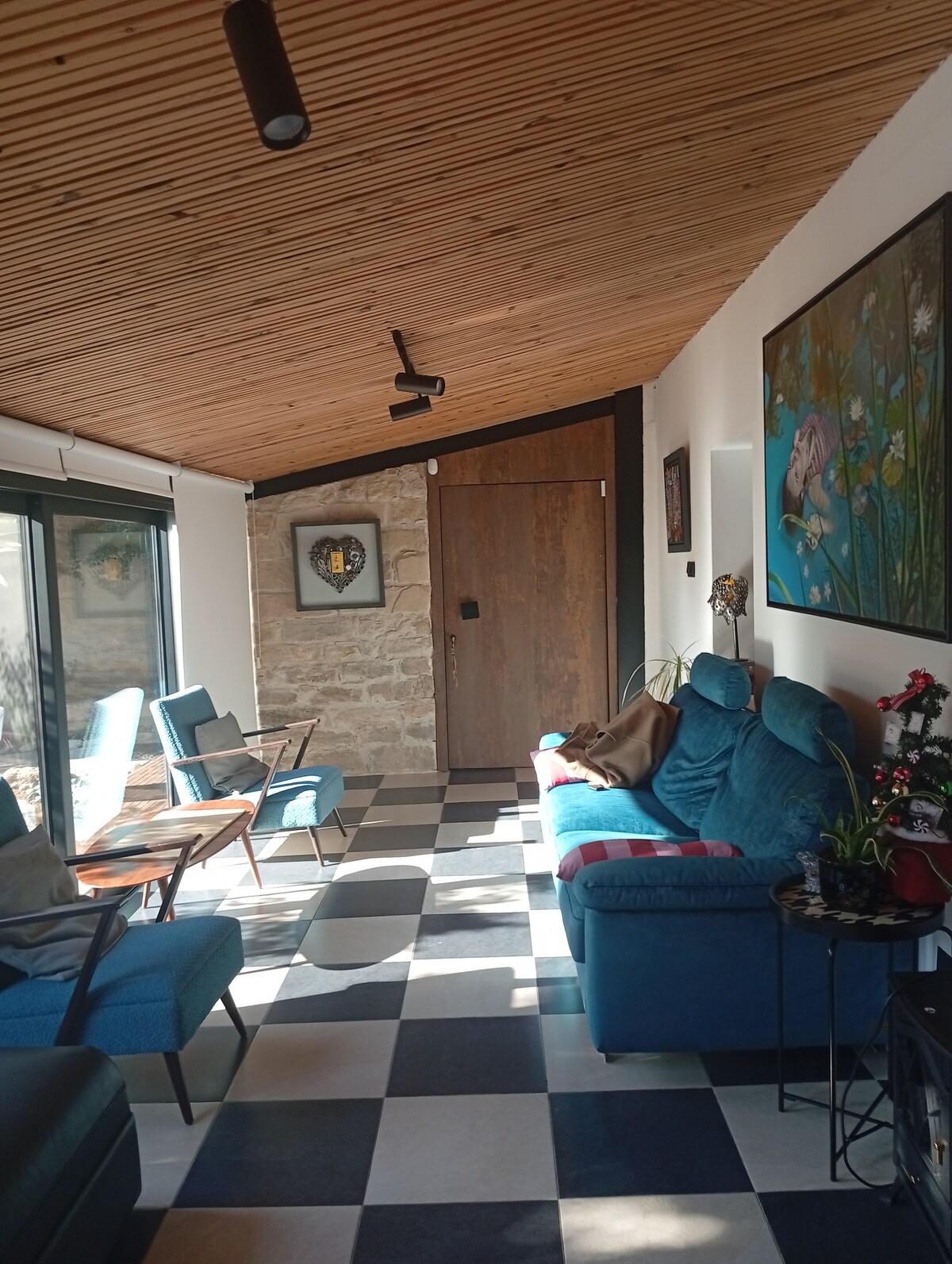 Charming luxury village House – Your Perfect Getaway! Escape to a peaceful village retreat surrounded by nature and full privacy. The house is fully equipped. – A lush garden with a variety of fruit trees – Outdoor sauna and cold jacuzzi – Cozy sunken seating area around a fire pit – A natural stream running through the garden – Open mountain views – Just minutes from the stunning Troodos Mountains Ideal for those seeking quiet, comfort, and connection to nature.