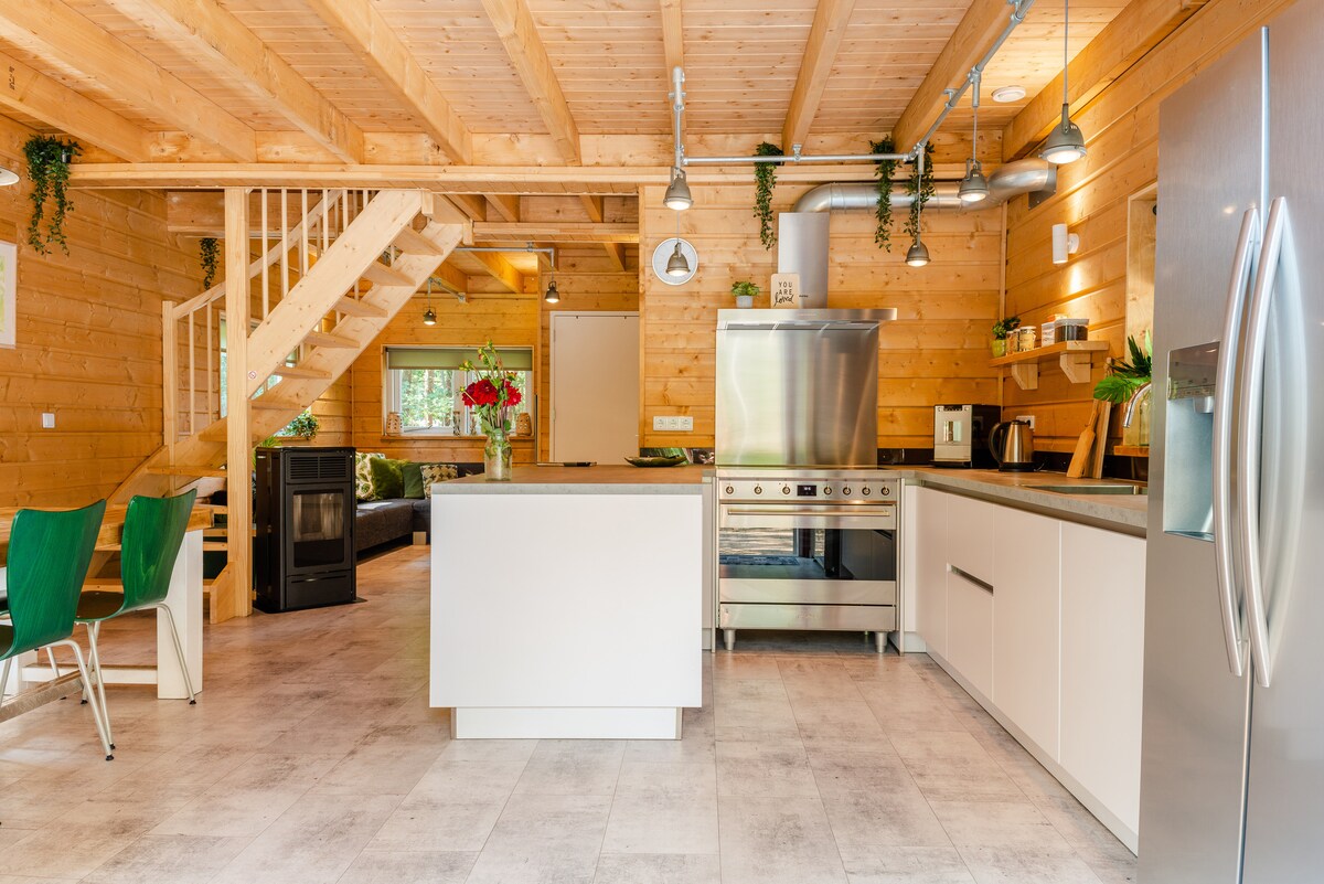 Chalet/bungaló de madera en el bosque, sauna, jacuzzi