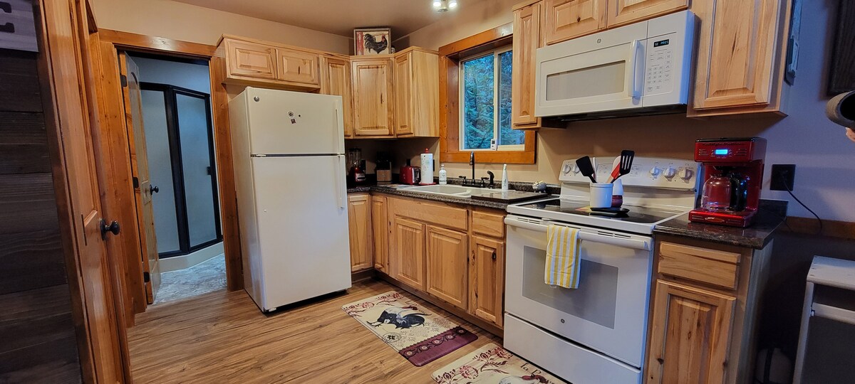 Relax and unwind surrounded by nature in this cozy yet modern cabin perched above beautiful Pinkham Creek and nestled within the National Forest. The towering forest is present out every view from the cabin. Walk the trail down to the creek and explore through the forest or simply rest your feet in the cool water. Stargaze from the deck at night after a day of adventure. Enjoy near by Lake Koocanusa, hiking trails, golfing and restaurants, and come home to your own private cabin in the woods.
