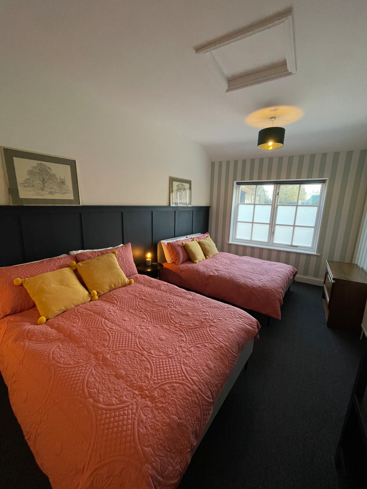 Parsley Barn, hogar de David y Su'en Miller, es una antigua casa de carruajes y establos reconvertida que da a una carretera tranquila en Great Massingham, a 12 millas al este de King's Lynn y a 9 millas de Sandringham. Ocuparás un ala privada que consta de 2 dormitorios encantadores, sala de juegos con mesa de billar de tamaño completo, sala de jardín con cocina pequeña y comedor más un jardín trasero privado. Para el desayuno puedes elegir entre pan recién horneado, cruasanes, pain au chocolat, cereales, fruta, yogur y conservas caseras.