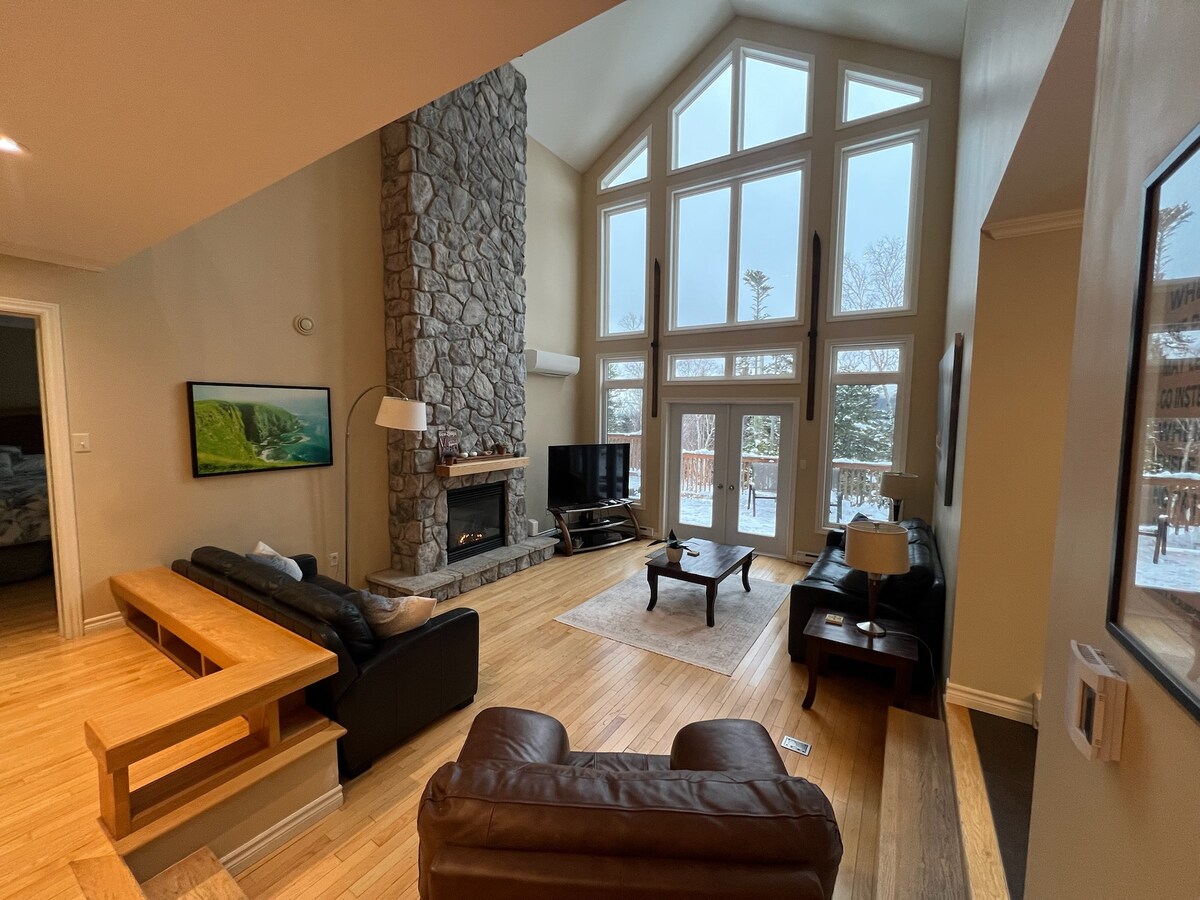 Ofrecemos alojamiento de lujo en nuestro chalet de 6 dormitorios en  Humber Valley Resort en Little Rapids, Terranova. Nuestro chalet tiene una amplia cocina de última generación, amplio comedor y sala de estar con techos abovedados, majestuosos dormitorios con baños en suite. El chalet está equipado con todas las comodidades posibles y se suministra con sábanas, toallas de algodón peinadas, jabones, champús y artículos de aseo personal. Si necesitas más información, ponte en contacto con nosotros en cualquier momento.