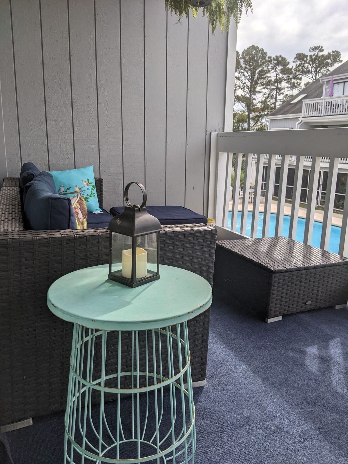 Hola: y bienvenido de parte de tus anfitriones Jeannie y Alan Williams. Estamos encantados de recibirte como nuestro huésped. ¡He sido propietaria del pequeño “chateau” durante 20 años y lo llamo hogar! ¡Qué hermosa vista, este apartamento es absolutamente adorable y te hace sentir como en casa! ¡Todo lo que necesitas está en el castillo! ¡Sal a la terraza para disfrutar del café de la mañana y ver a los delfines! Este apartamento está a solo unas manzanas (8 manzanas) de Main Street en NMB (tiendas y restaurantes). Aparcamiento privado.