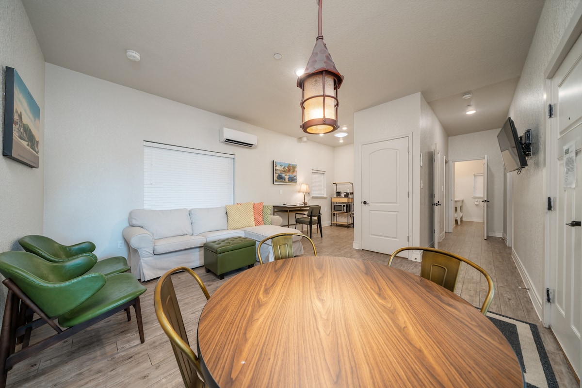 Nuevo edificio histórico/vintage remodelado con un toque moderno. Disfruta de un hotel boutique privado y acogedor con enormes duchas a ras de suelo. Encontrarás todo tipo de características únicas en este edificio construido en la década de 1940. Por no hablar de... ¡la ubicación, la ubicación, la ubicación! A poca distancia a pie (0,25 millas) del centro histórico con un gran aparcamiento. A cinco minutos en coche de Oaklawn. Bienvenido al Orange Street Boutique Hotel.