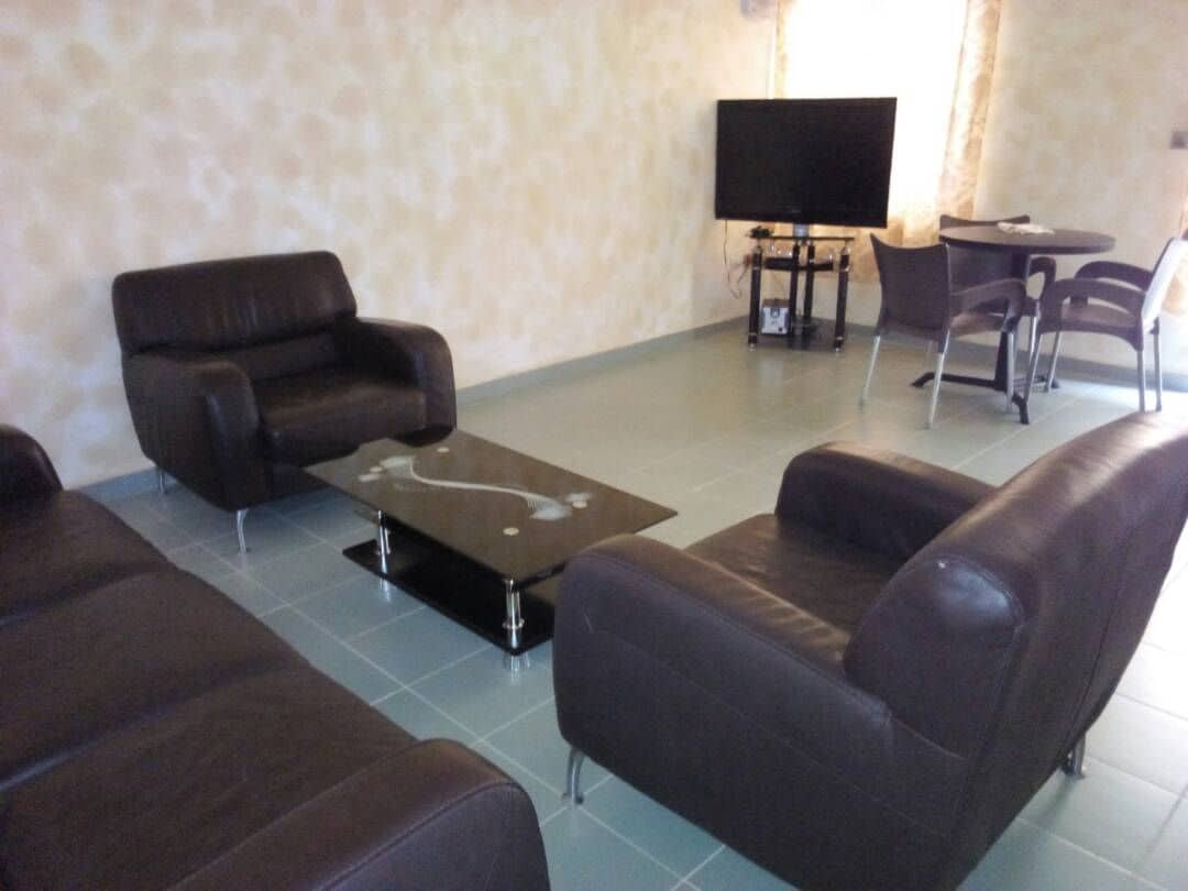 Este elegante apartamento de una sola planta está disponible en el corazón de Cotonú, cerca del CEG houeyiho, a 8 minutos de la playa y a 10 del aeropuerto. -Todas las habitaciones tienen aire acondicionado -Cocina con todas las comodidades modernas -Smart TV y sistema de alta fidelidad en el salón para su descanso **Incluido en el precio: -Wifi de alta velocidad -Grupo electrógeno de relevo para la noche -Agente de seguridad presente las 24 horas - Agua con tanque de retención en caso de corte de agua por parte de la Soneb -Personal de limpieza 1 vez por semana bajo petición.