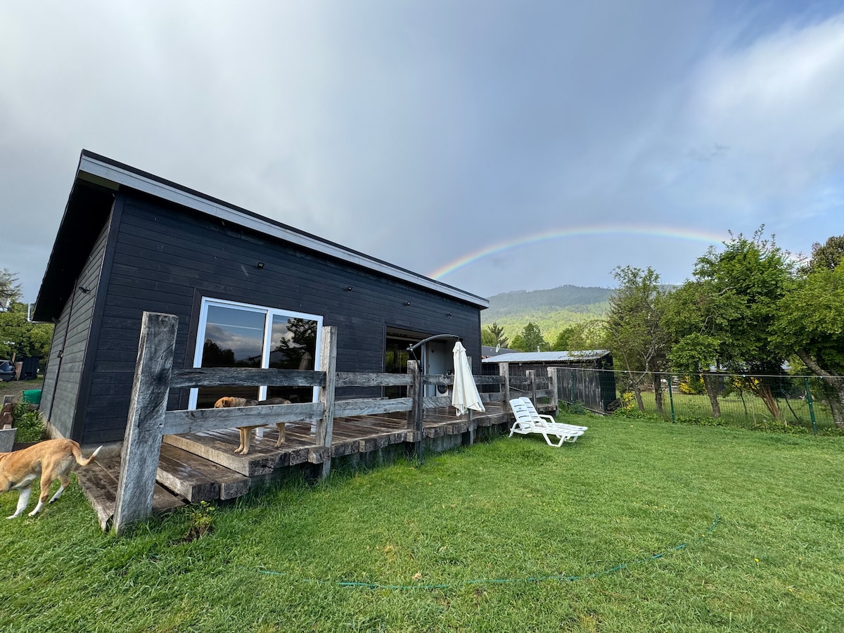 Relájate en esta escapada única y tranquila, con tremenda vista al volcán Villarica. Acceso de todo tipo de vehiculo. La cabaña es nueva y de muy alta calidad, equipada con todo. Su estadía incluye uso de nuestro sauna privado en el bosque al lado de un riachuelo. La ubicación es 18 km de Pucón, 1 km de Ojos de Caburgua. Es un lugar perfecto para disfrutar la naturaleza pura, contamos con >25 especies de aves incl búos. Además es ideal para escapar de la ciudad y trabajar en forma remota.